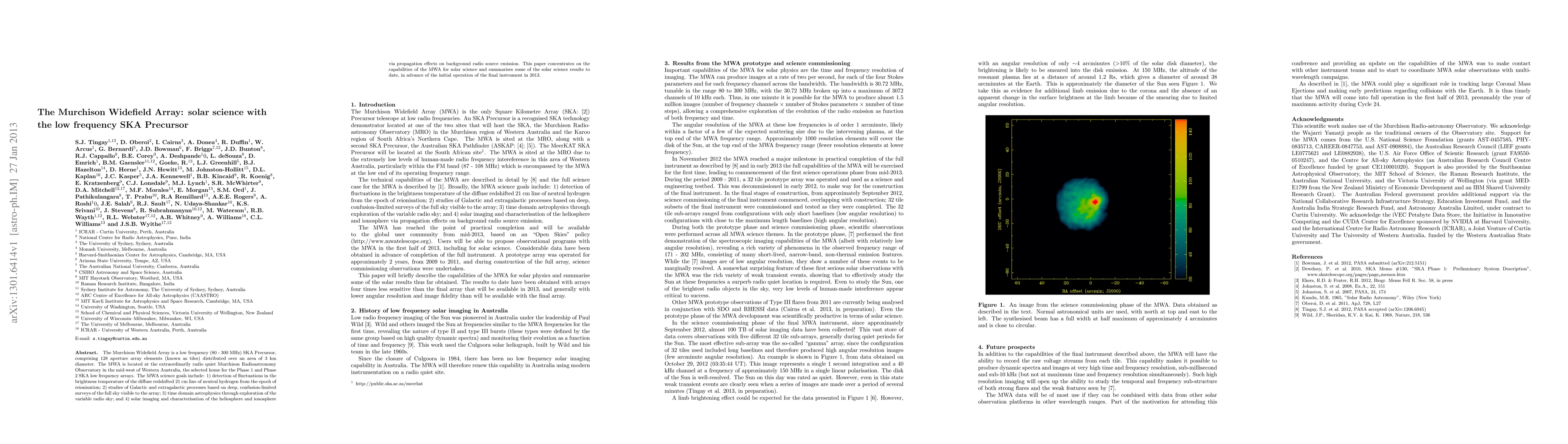 The Murchison Widefield Array (MWA) is a precursor to the SKA low frequency array, designed for solar science and heliosphere studies. It has provided initial results on solar imaging and ionospheric propagation effects, highlighting its potential for future solar observations.