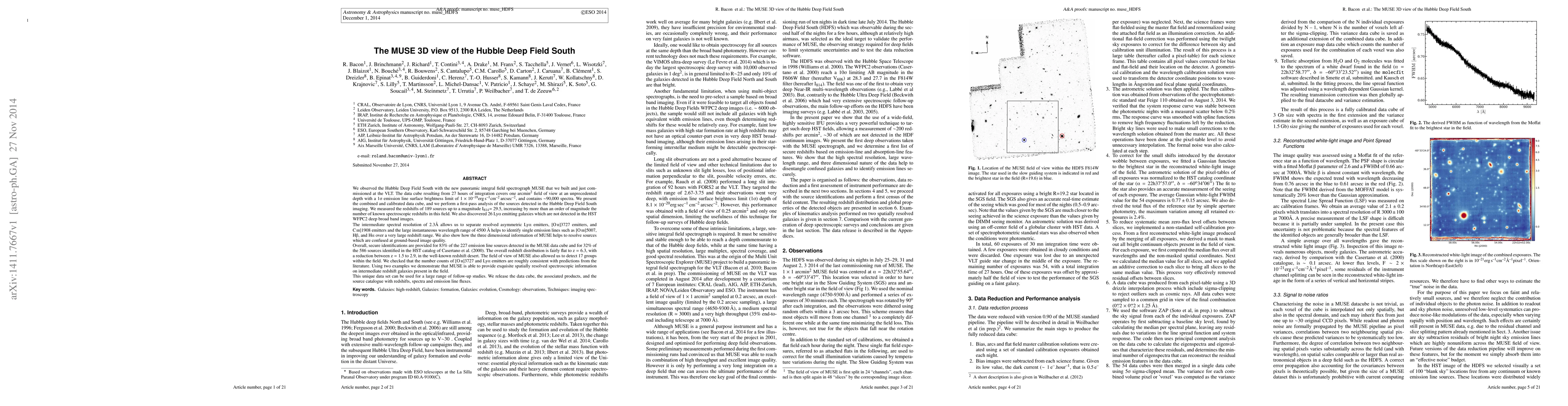 The MUSE 3D view of the Hubble Deep Field South reveals unprecedented depth and resolution, detecting 189 redshifts up to F814W = 29.5 and identifying 26 Lya emitting galaxies not seen in HST images. The instrument's spectral resolution and wavelength range enable detailed analysis of emission lines and spatial resolution of confused sources.