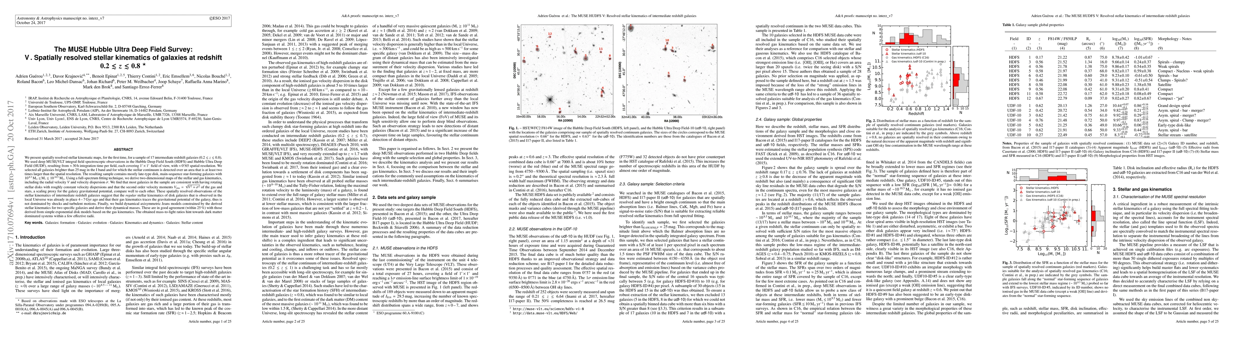 This paper presents spatially resolved stellar kinematic maps for 17 intermediate redshift galaxies, revealing that most exhibit rotating stellar disks with consistent velocity dispersions. The study suggests that the regular kinematics of disk galaxies seen today were established 4-7 billion years ago, and gas kinematics reflect the gravitational potential of the galaxies.