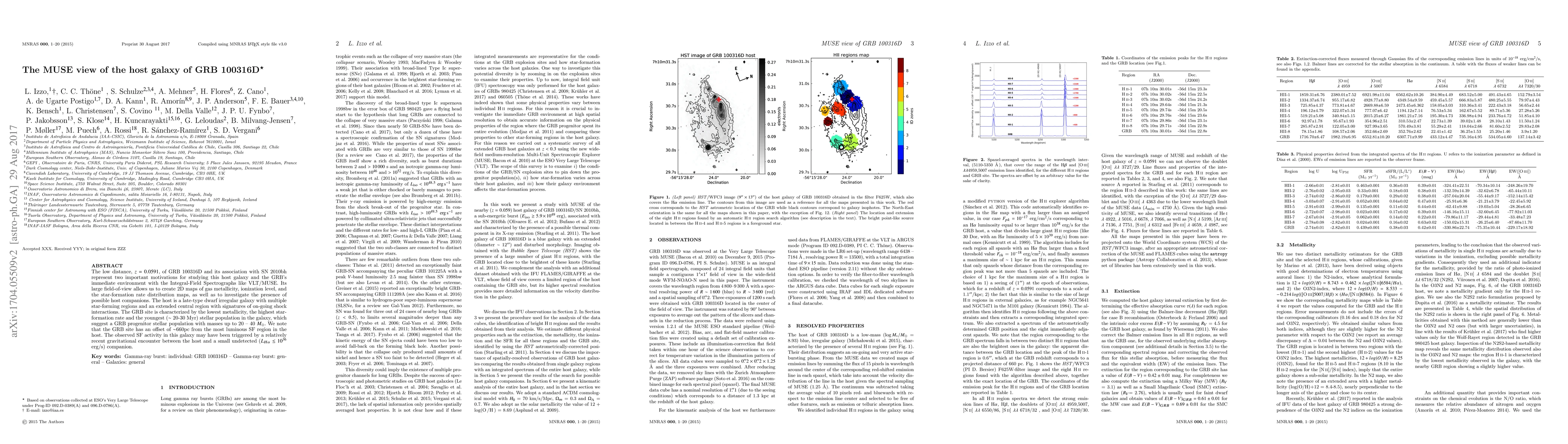 The research utilized VLT/MUSE to study the host galaxy of GRB 100316D, creating 2D maps of gas metallicity, ionization level, and star-formation rate distribution, and investigating possible host companions.