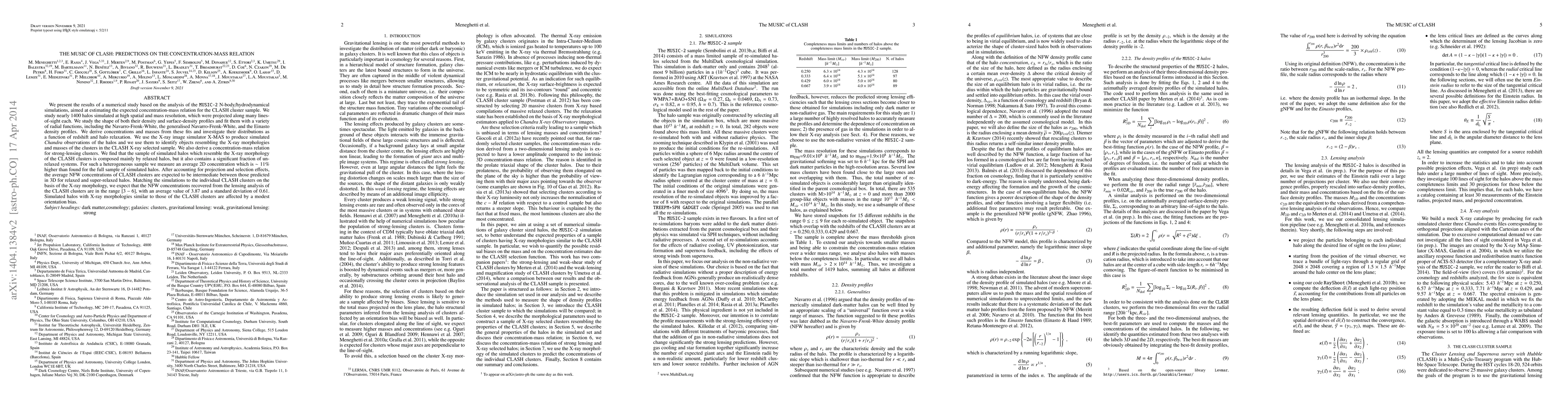 The study uses high-resolution MUSIC-2 simulations to predict concentration-mass relations for CLASH clusters, finding that X-ray morphology-matched halos have average NFW concentrations of 3.87 with a std dev of 0.61. Relaxed and un-relaxed systems contribute, with un-relaxed ones having ~11% higher 2D concentrations due to projection effects.
