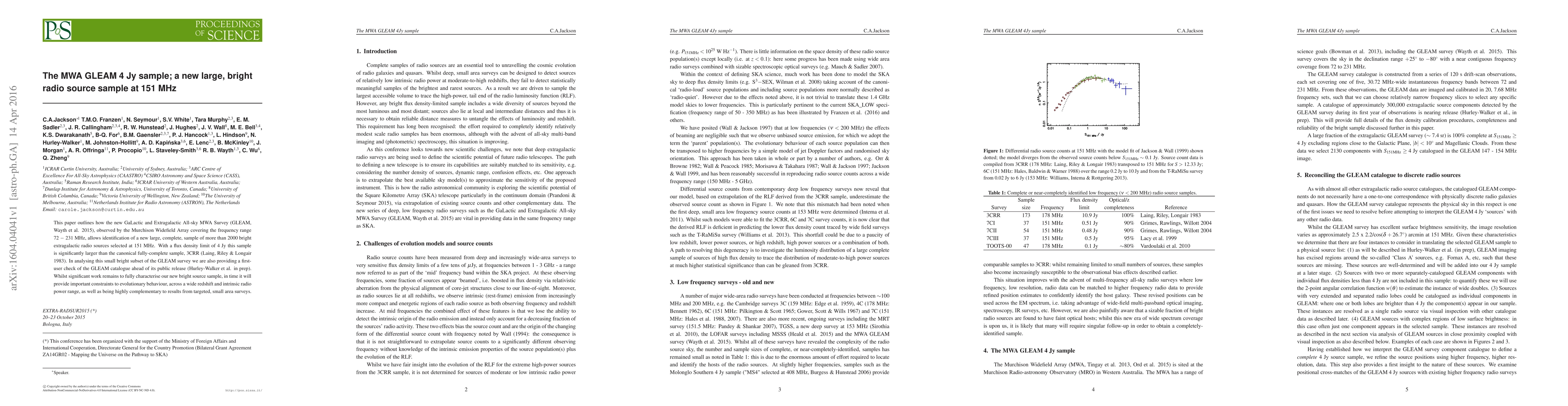 A new large sample of over 2000 bright extragalactic radio sources was identified from the GaLactic and Extragalactic All-sky MWA Survey at 151 MHz, providing a significant expansion on existing catalogs.