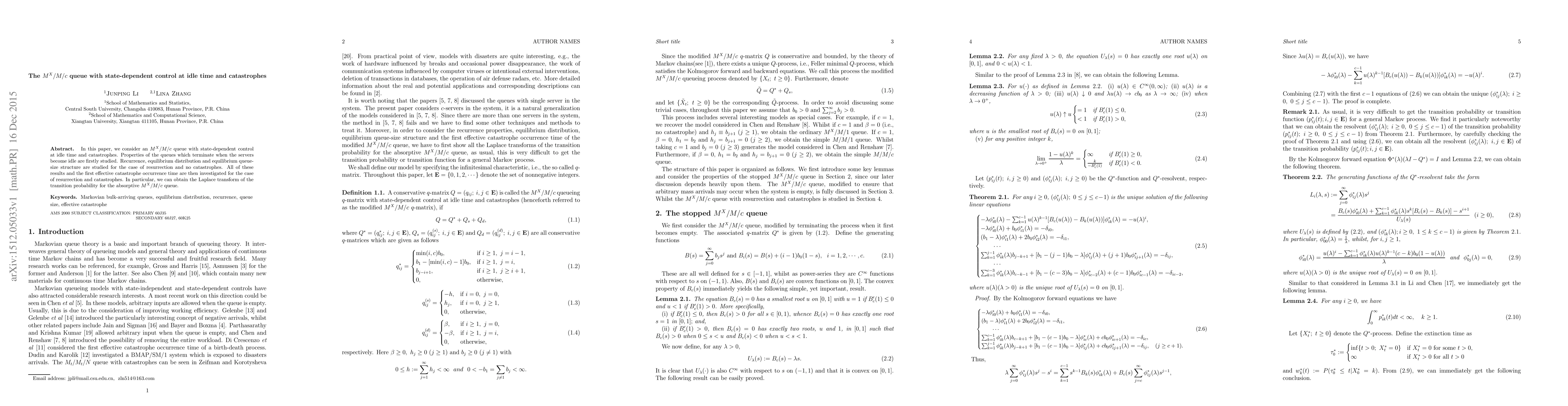 This paper studies an M^X/M/c queue with state-dependent control at idle time and catastrophes, focusing on properties like recurrence, equilibrium distribution, and transition probabilities in the presence of server idleness and catastrophic events.