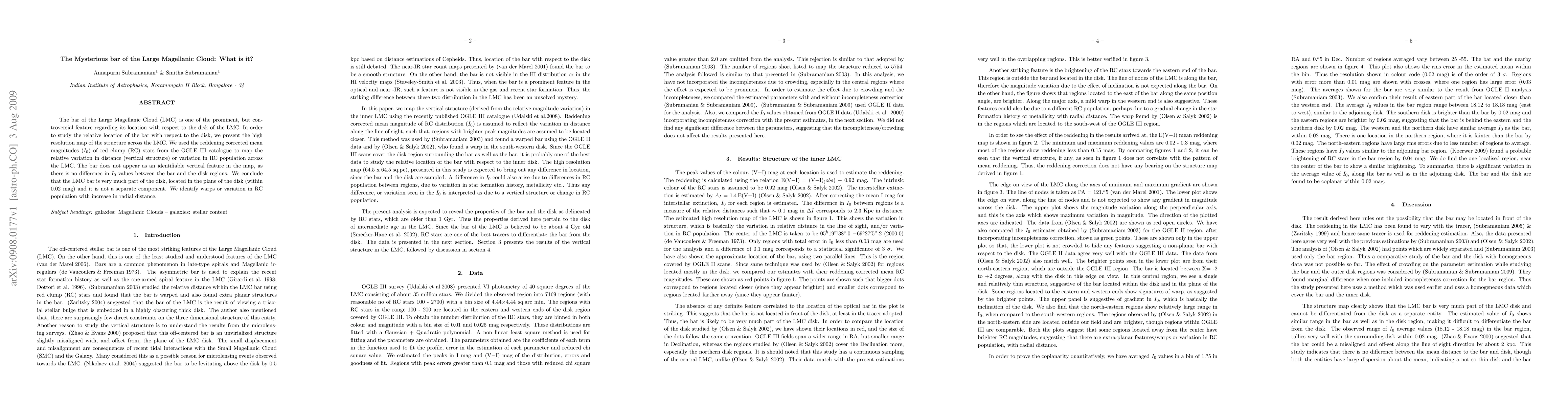 The Large Magellanic Cloud's bar is part of its disk, not a separate component, according to a new study that mapped the cloud's structure in high resolution.