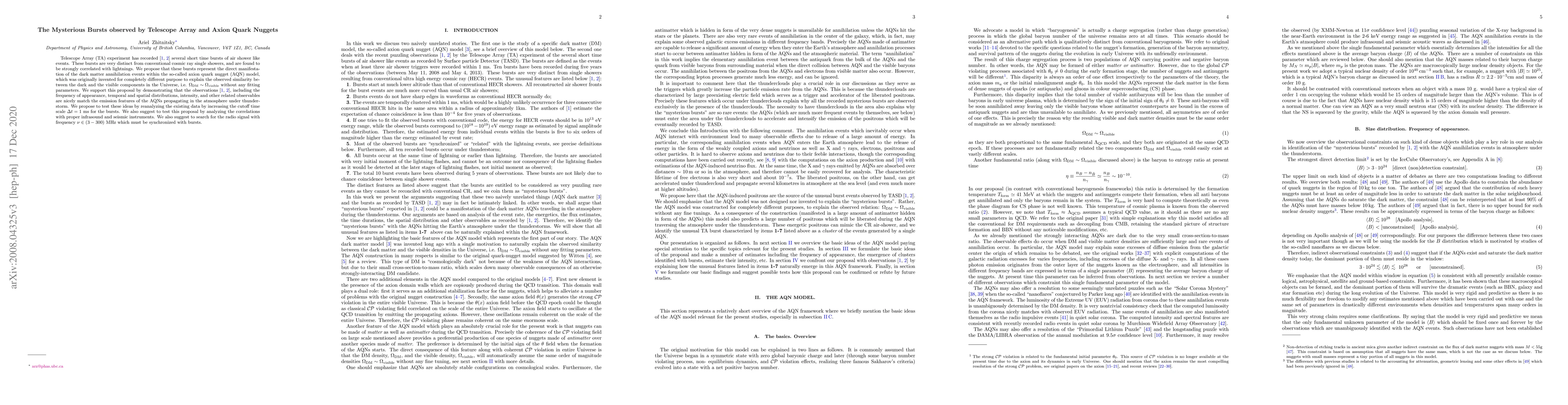 Researchers propose that bursts observed by Telescope Array may be evidence of axion quark nugget annihilation events, which could provide insight into dark matter detection.