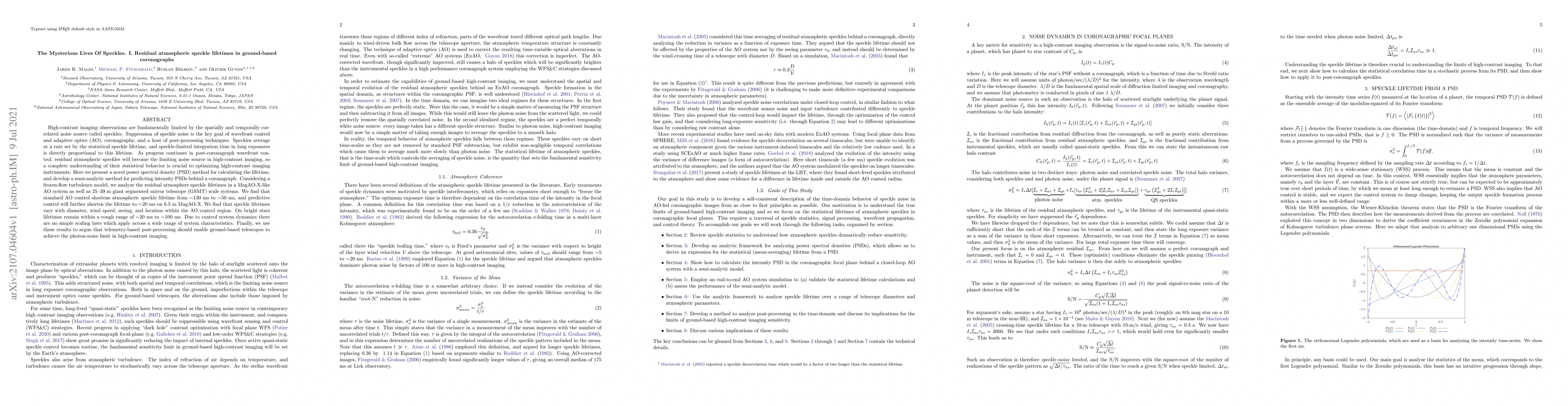 High-contrast imaging observations are fundamentally limited by the spatially and temporally correlated noise source called speckles. Suppression of speckle noise is the key goal of wavefront control and adaptive optics (AO), coronagraphy, and a host of post-processing techniques. Speckles average at a rate set by the statistical speckle lifetime, and speckle-limited integration time in long exposures is directly proportional to this lifetime. As progress continues in post-coronagraph wavefront control, residual atmospheric speckles will become the limiting noise source in high-contrast imaging, so a complete understanding of their statistical behavior is crucial to optimizing high-contrast imaging instruments. Here we present a novel power spectral density (PSD) method for calculating the lifetime, and develop a semi-analytic method for predicting intensity PSDs behind a coronagraph. Considering a frozen-flow turbulence model, we analyze the residual atmosphere speckle lifetimes in a MagAO-X-like AO system as well as 25--39 m giant segmented mirror telescope (GSMT) scale systems. We find that standard AO control shortens atmospheric speckle lifetime from ~130 ms to ~50 ms, and predictive control will further shorten the lifetime to ~20 ms on 6.5 m MagAO-X. We find that speckle lifetimes vary with diameter, wind speed, seeing, and location within the AO control region. On bright stars lifetimes remain within a rough range of ~20 ms to ~100 ms. Due to control system dynamics there are no simple scaling laws which apply across a wide range of system characteristics. Finally, we use these results to argue that telemetry-based post-processing should enable ground-based telescopes to achieve the photon-noise limit in high-contrast imaging.