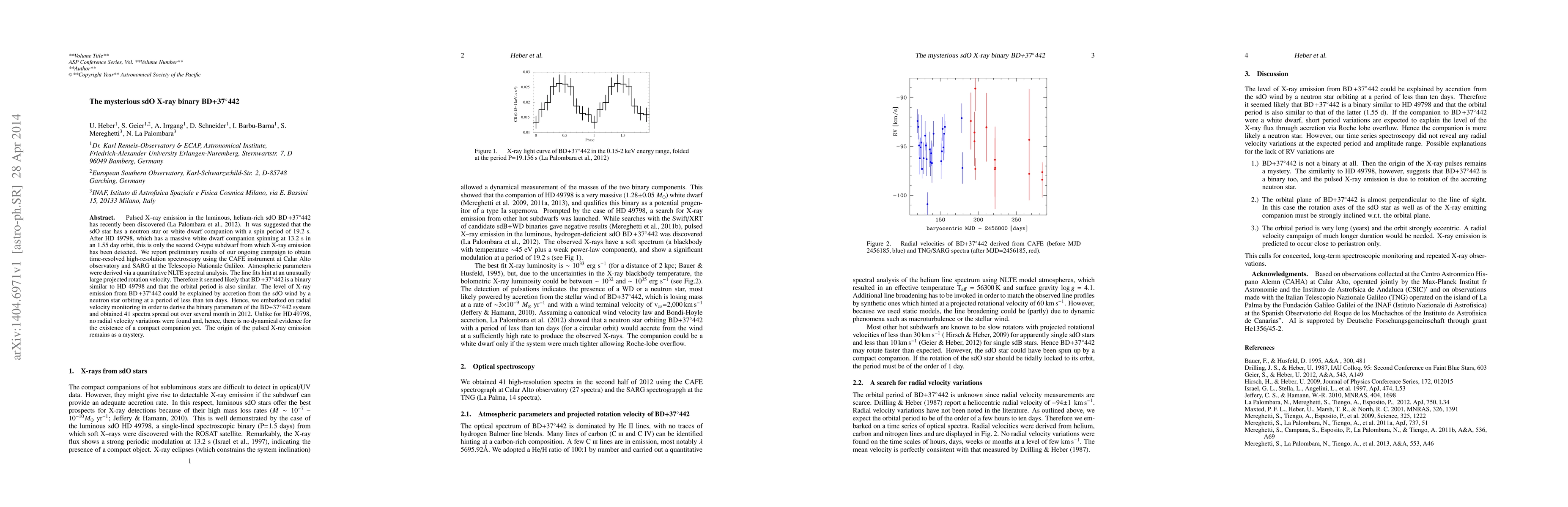 Researchers studied the X-ray binary BD+37 442, finding no dynamical evidence for a compact companion despite pulsed X-ray emission, leaving its origin a mystery.