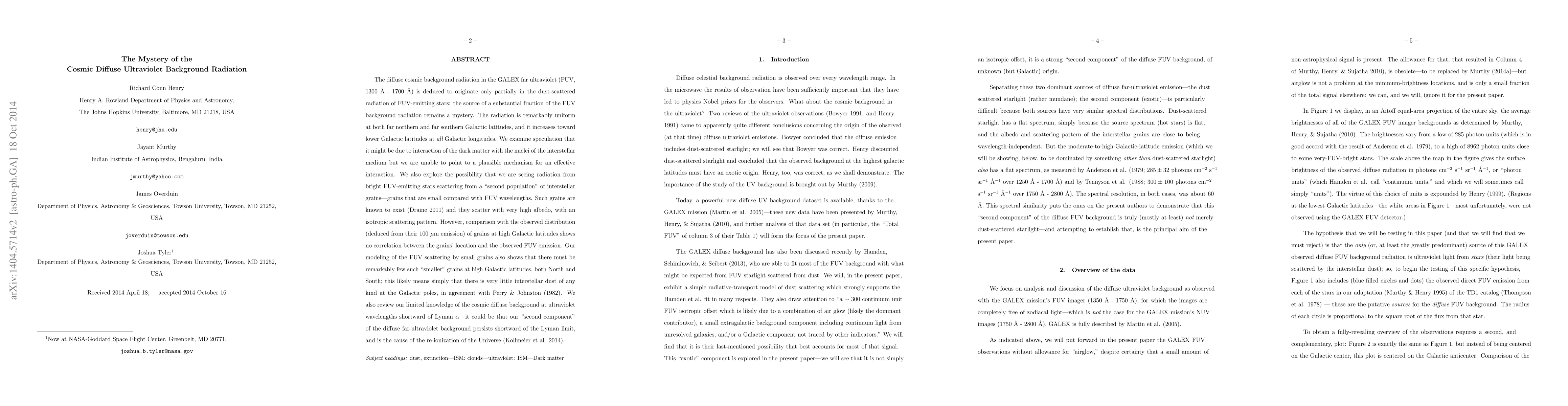 The diffuse ultraviolet cosmic background radiation in the far ultraviolet range is partially attributed to dust-scattered starlight, but a significant portion remains unexplained. Various hypotheses, including dark matter interactions and scattering from small interstellar grains, are explored but not conclusively supported.