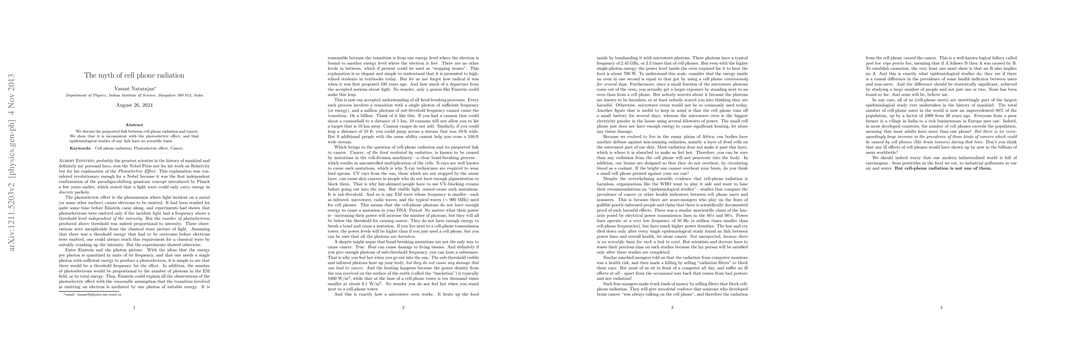 While the paper builds on existing knowledge, its novelty lies in applying the photoelectric effect principles to cell phone radiation, offering a clear, physics-based argument against potential harm.