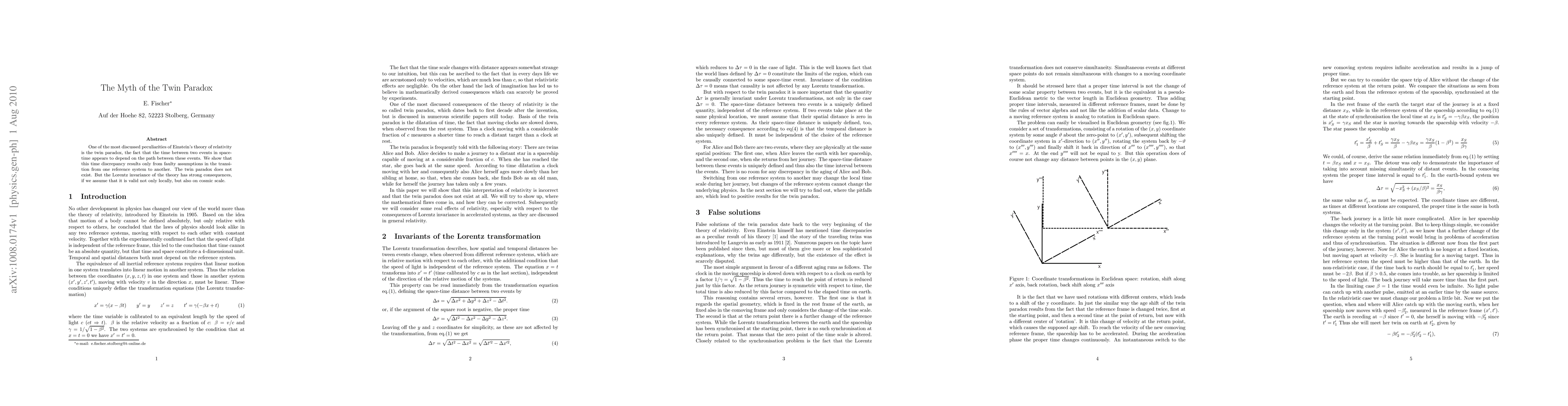 The twin paradox in Einstein's theory of relativity, often perceived as a time discrepancy between paths, is debunked as a result of incorrect assumptions in transitioning between reference systems. The Lorentz invariance remains valid, with significant implications if extended to cosmic scales.