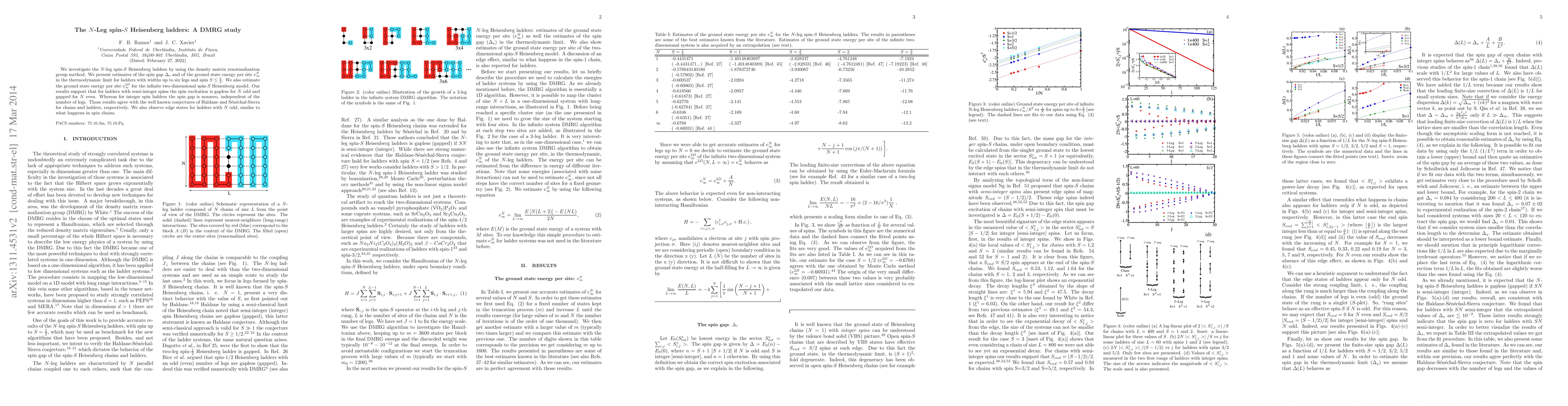 This study uses the density matrix renormalization group method to analyze N-leg spin-S Heisenberg ladders, finding that semi-integer spin ladders exhibit gapless spin excitations for odd legs and gapped excitations for even legs, while integer spin ladders show a nonzero spin gap regardless of the number of legs. The results align with Haldane's conjectures for chains and Sénéchal-Sierra's for ladders.