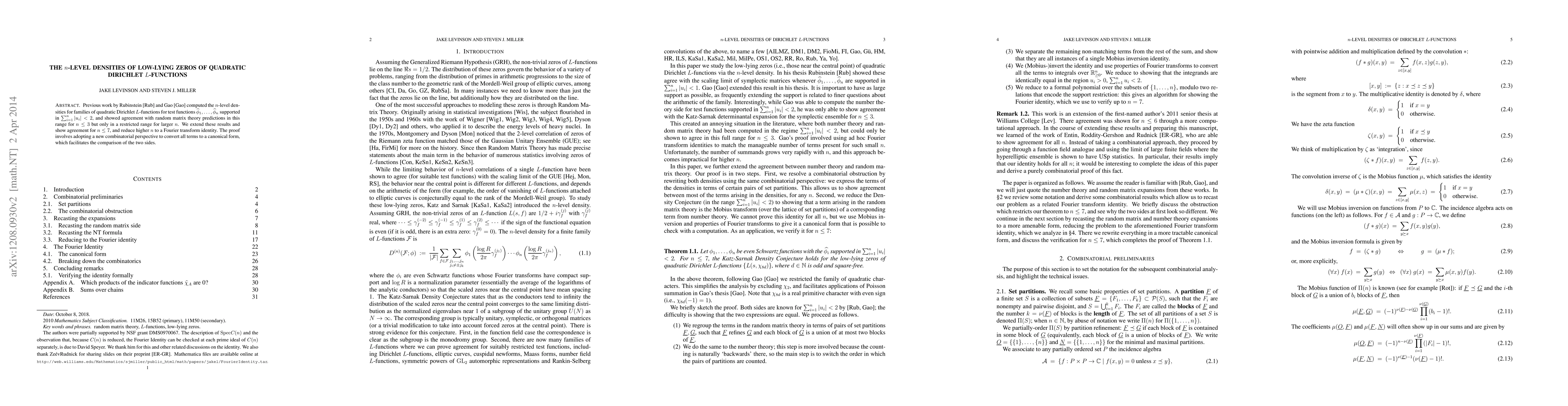 This paper extends the n-level density results for quadratic Dirichlet L-functions, showing agreement with random matrix theory predictions up to n=8. The authors achieve this by adopting a new combinatorial approach to convert all terms to a canonical form, facilitating the comparison with theoretical predictions.
