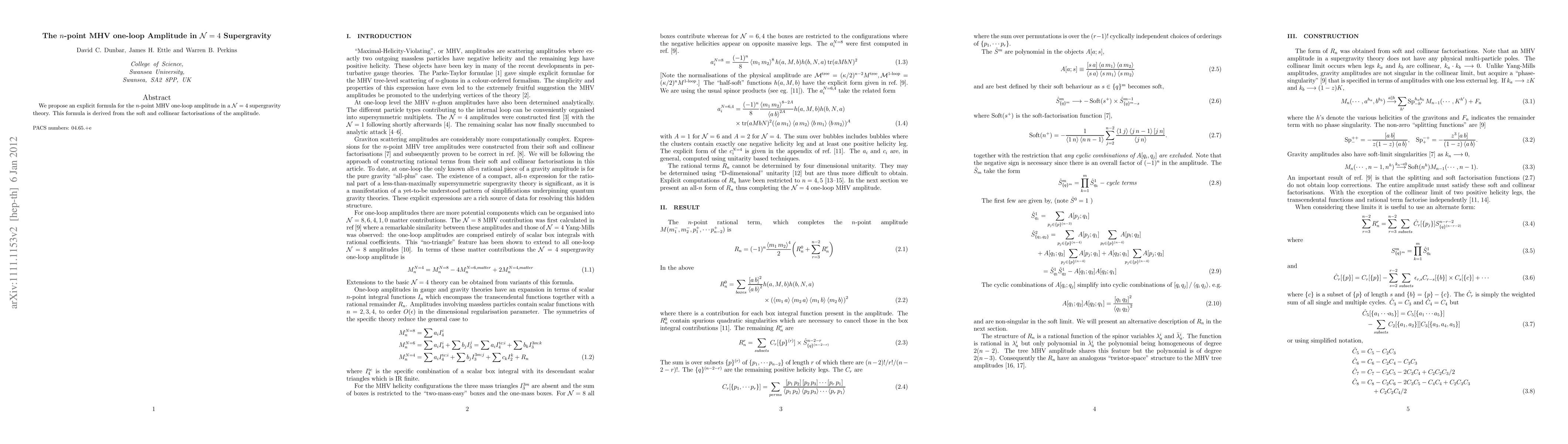 This paper presents an explicit formula for the n-point MHV one-loop amplitude in N=4 supergravity, derived using soft and collinear factorization techniques. The formula provides a significant advancement in understanding the behavior of supergravity at one-loop level.