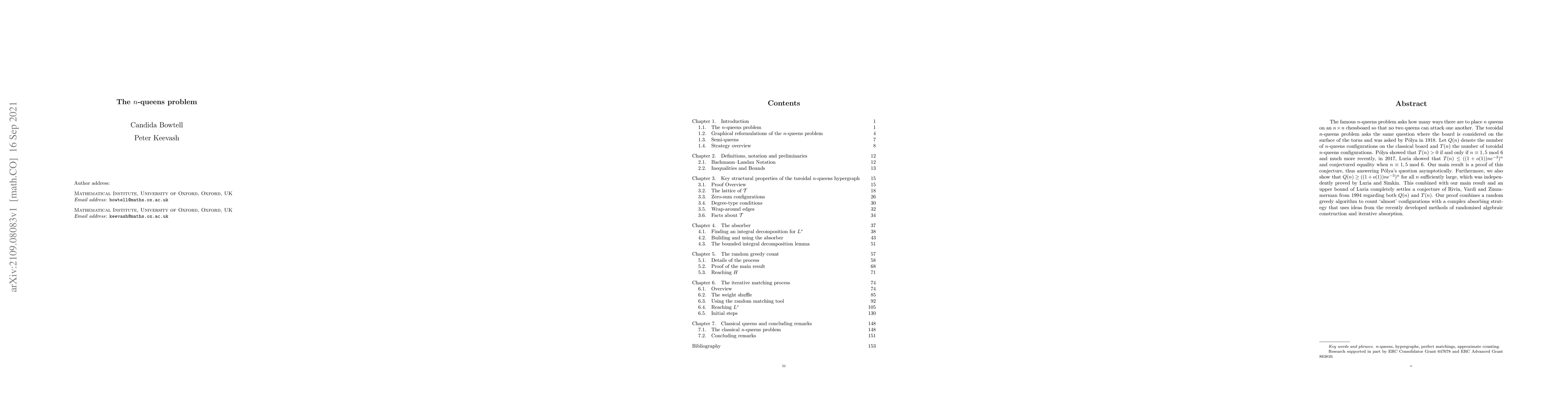 The famous $n$-queens problem asks how many ways there are to place $n$ queens on an $n \times n$ chessboard so that no two queens can attack one another. The toroidal $n$-queens problem asks the same question where the board is considered on the surface of the torus and was asked by P\'{o}lya in 1918. Let $Q(n)$ denote the number of $n$-queens configurations on the classical board and $T(n)$ the number of toroidal $n$-queens configurations. P\'{o}lya showed that $T(n)>0$ if and only if $n \equiv 1,5 \mod 6$ and much more recently, in 2017, Luria showed that $T(n)\leq ((1+o(1))ne^{-3})^n$ and conjectured equality when $n \equiv 1,5 \mod 6$. Our main result is a proof of this conjecture, thus answering P\'{o}lya's question asymptotically. Furthermore, we also show that $Q(n)\geq((1+o(1))ne^{-3})^n$ for all $n$ sufficiently large, which was independently proved by Luria and Simkin. Combined with our main result and an upper bound of Luria, this completely settles a conjecture of Rivin, Vardi and Zimmmerman from 1994 regarding both $Q(n)$ and $T(n)$. Our proof combines a random greedy algorithm to count 'almost' configurations with a complex absorbing strategy that uses ideas from the recently developed methods of randomised algebraic construction and iterative absorption.