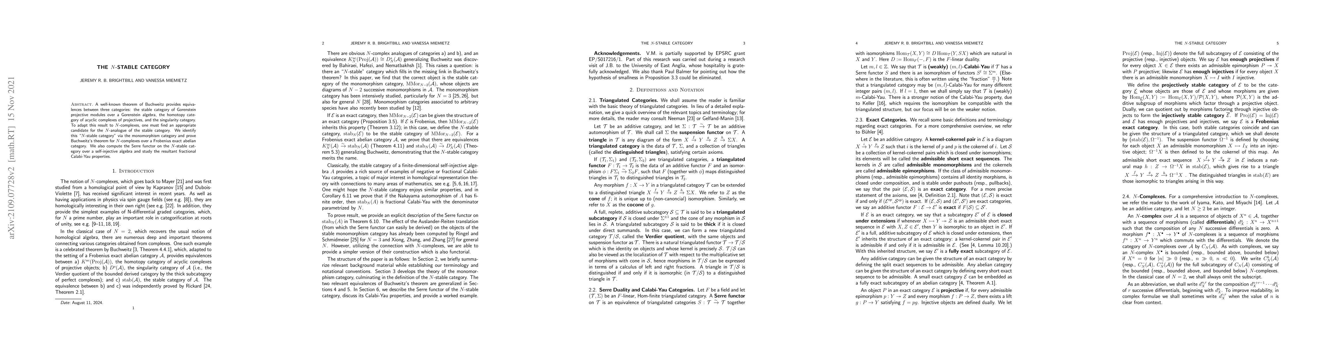 Summary: The paper identifies and defines the "$N$-stable category" via the monomorphism category, adapting Buchweitz's theorem for $N$-complexes in Frobenius exact abelian categories, and computes the Serre functor and fractional Calabi-Yau properties for self-injective algebras.