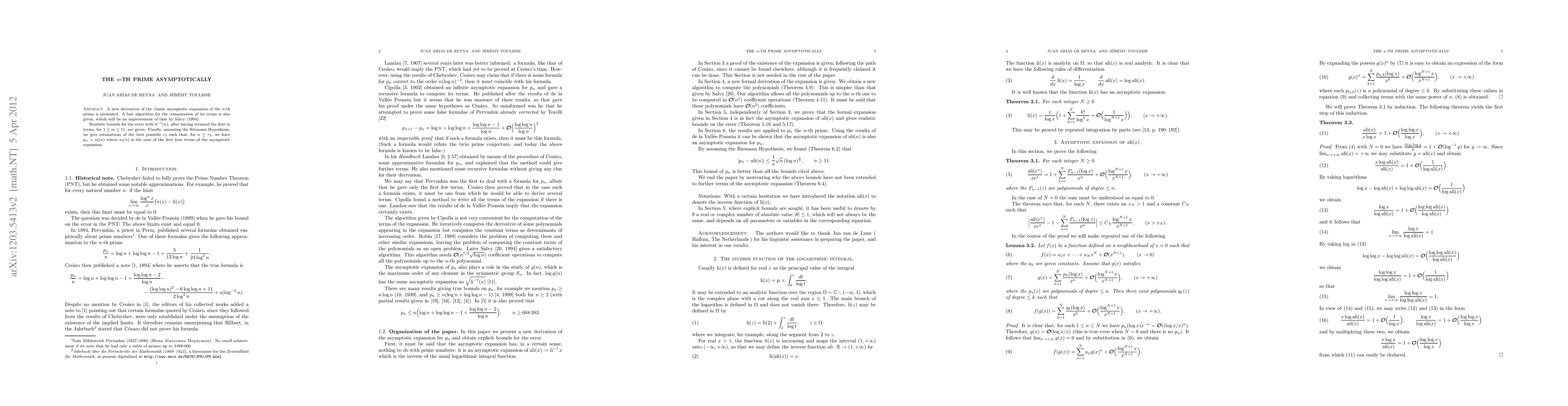 The paper presents a new derivation of the classic asymptotic expansion of the n-th prime, utilizing a fast algorithm for computing its terms, which is an improvement over Salvy's (1994) algorithm.