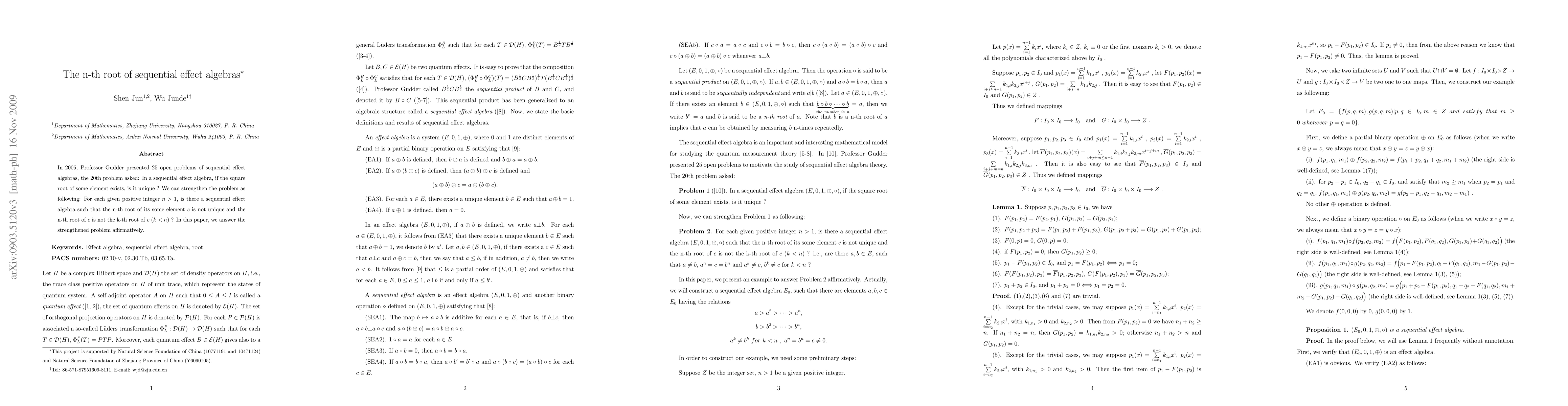 motivate its study. The 20th problem asked: In a sequential effect algebra, if