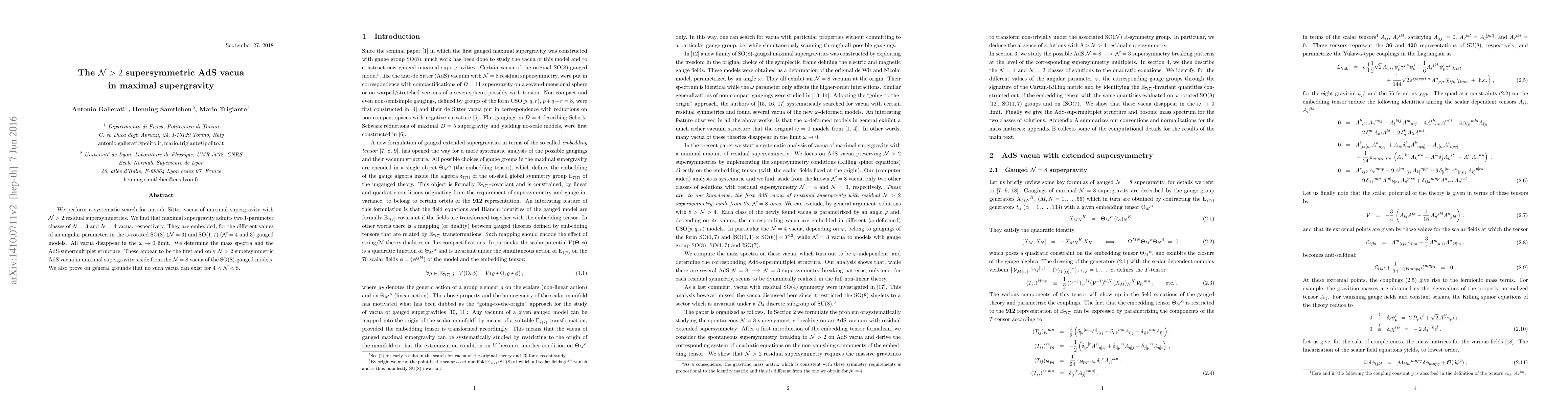 We perform a systematic search for anti-de Sitter vacua of maximal