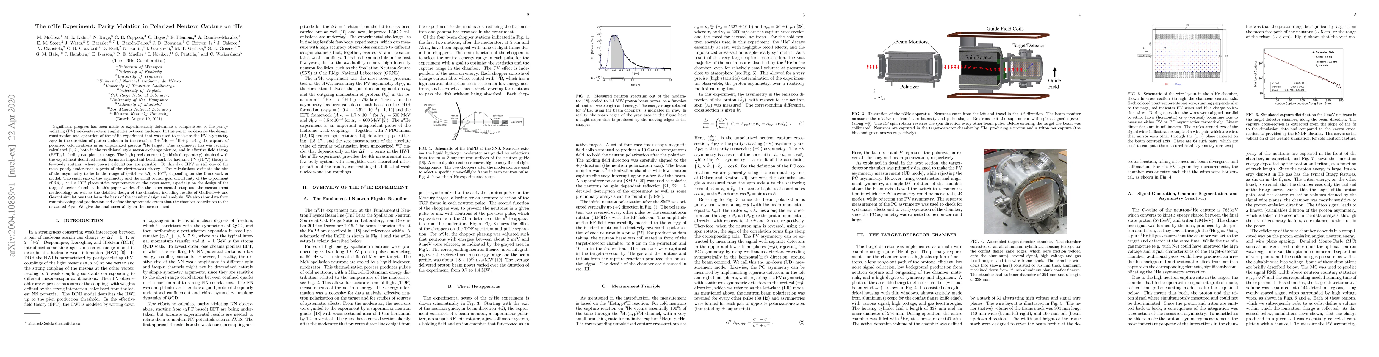 Significant progress has been made to experimentally determine a complete set of the parity-violating (PV) weak-interaction amplitudes between nucleons. In this paper we describe the design, construction and operation of the n$^3$He experiment that was used to measure the PV asymmetry $A_{\mathrm{PV}}$ in the direction of proton emission in the reaction $\vec{\mathrm{n}} + {^3}\mathrm{He} \rightarrow {^3}\mathrm{H} + \mathrm{p}$, using the capture of polarized cold neutrons in an unpolarized gaseous $^3\mathrm{He}$ target. This asymmetry has was recently calculated \cite{Viviani,Viviani2}, both in the traditional style meson exchange picture, and in effective field theory (EFT), including two-pion exchange. The high precision result (published separately) obtained with the experiment described herein forms an important benchmark for hadronic PV (HPV) theory in few-body systems, where precise calculations are possible. To this day, HPV is still one of the most poorly understood aspects of the electro-weak theory. The calculations estimate the size of the asymmetry to be in the range of $(-9.4 \rightarrow 3.5)\times 10^{-8}$, depending on the framework or model. The small size of the asymmetry and the small overall goal uncertainty of the experiment of $\delta A_{\mathrm{PV}} \simeq 1\times10^{-8}$ places strict requirements on the experiment, especially on the design of the target-detector chamber. In this paper we describe the experimental setup and the measurement methodology as well as the detailed design of the chamber, including results of Garfield++ and Geant4 simulations that form the basis of the chamber design and analysis. We also show data from commissioning and production and define the systematic errors that the chamber contributes to the measured $A_{\mathrm{PV}}$. We give the final uncertainty on the measurement.