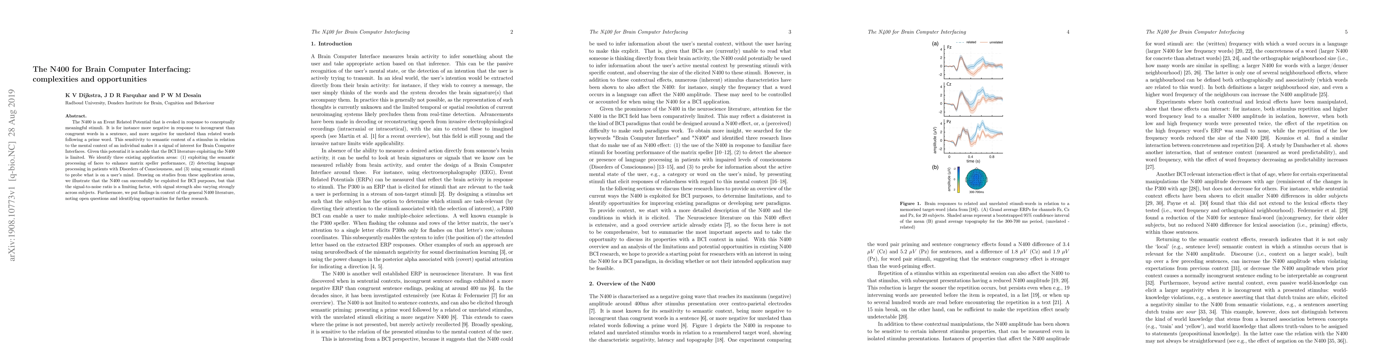 The N400 is an Event Related Potential that is evoked in response to conceptually meaningful stimuli. It is for instance more negative in response to incongruent than congruent words in a sentence, and more negative for unrelated than related words following a prime word. This sensitivity to semantic content of a stimulus in relation to the mental context of an individual makes it a signal of interest for Brain Computer Interfaces. Given this potential it is notable that the BCI literature exploiting the N400 is limited. We identify three existing application areas: (1) exploiting the semantic processing of faces to enhance matrix speller performance, (2) detecting language processing in patients with Disorders of Consciousness, and (3) using semantic stimuli to probe what is on a user's mind. Drawing on studies from these application areas, we illustrate that the N400 can successfully be exploited for BCI purposes, but that the signal-to-noise ratio is a limiting factor, with signal strength also varying strongly across subjects. Furthermore, we put findings in context of the general N400 literature, noting open questions and identifying opportunities for further research.
