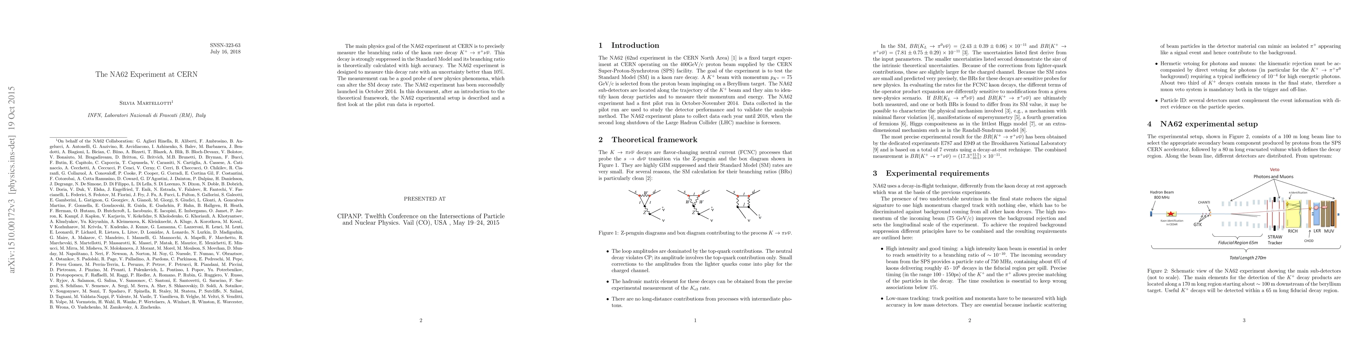 The NA62 experiment at CERN aims to precisely measure the branching ratio of the rare kaon decay $K^+\rightarrow \pi^+ \nu \bar\nu$, which could reveal new physics phenomena beyond the Standard Model. The experiment, launched in October 2014, seeks to achieve an uncertainty of less than 10% in the decay rate measurement.