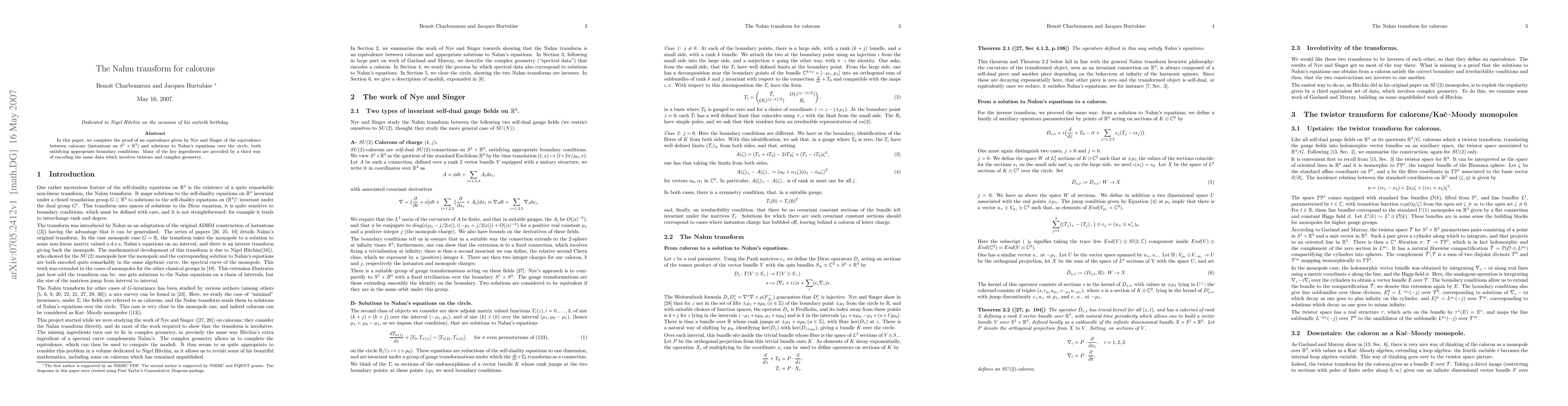 The paper proves the equivalence between calorons (instantons on $S^1\times R^3$) and solutions to Nahm's equations over the circle, utilizing twistors and complex geometry for key ingredients. The focus is on satisfying appropriate boundary conditions for both.