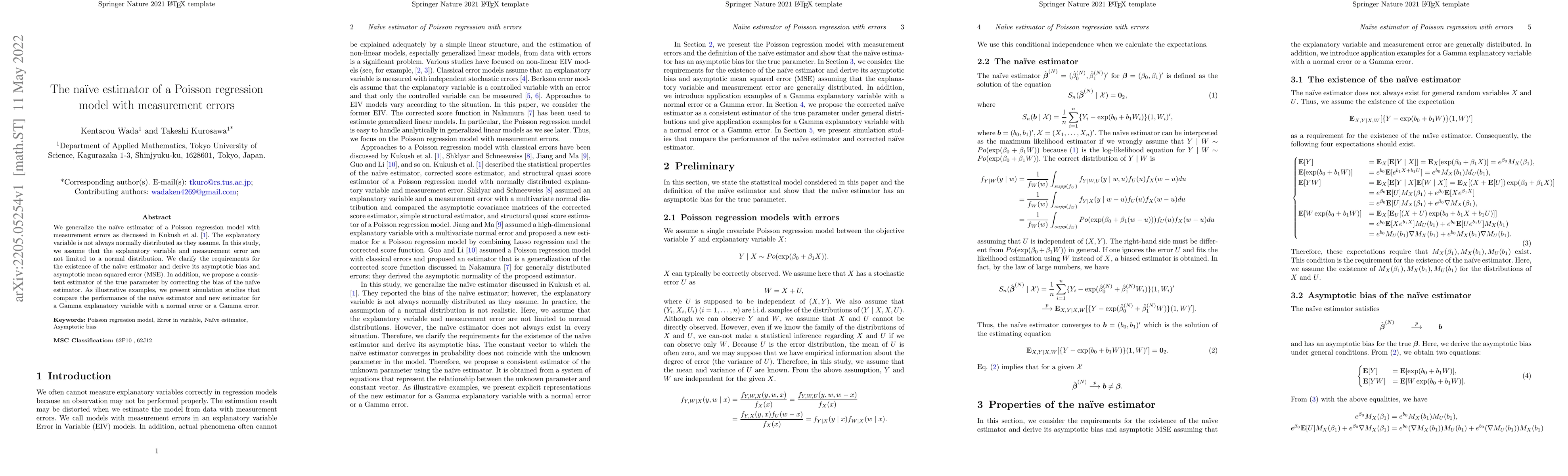 The paper presents a generalized naive estimator for Poisson regression with measurement errors and a method to correct its bias, contributing to more accurate parameter estimation in such models.