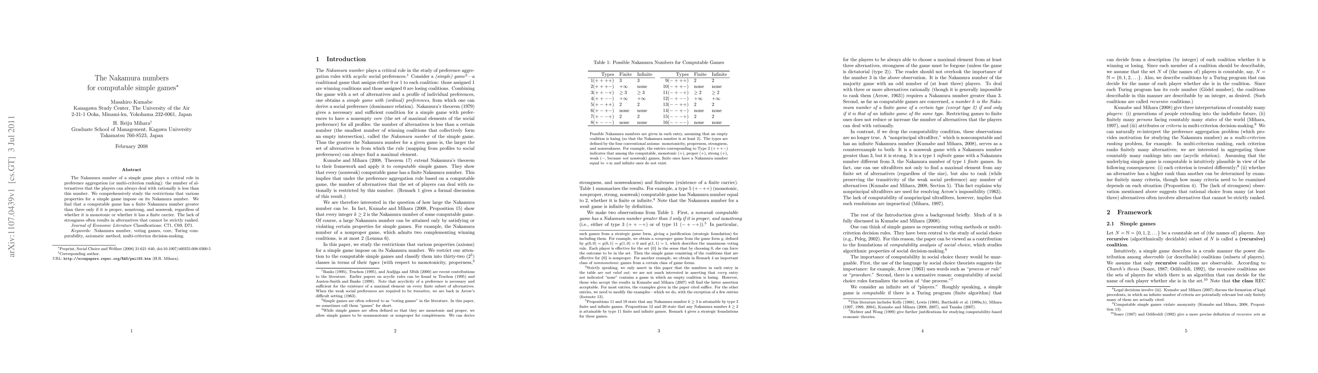 A research paper explores how certain properties of simple games affect their Nakamura number, a measure that determines which alternatives players can deal with rationally. It finds that only proper, nonstrong, and nonweak games have finite Nakamura numbers greater than three.