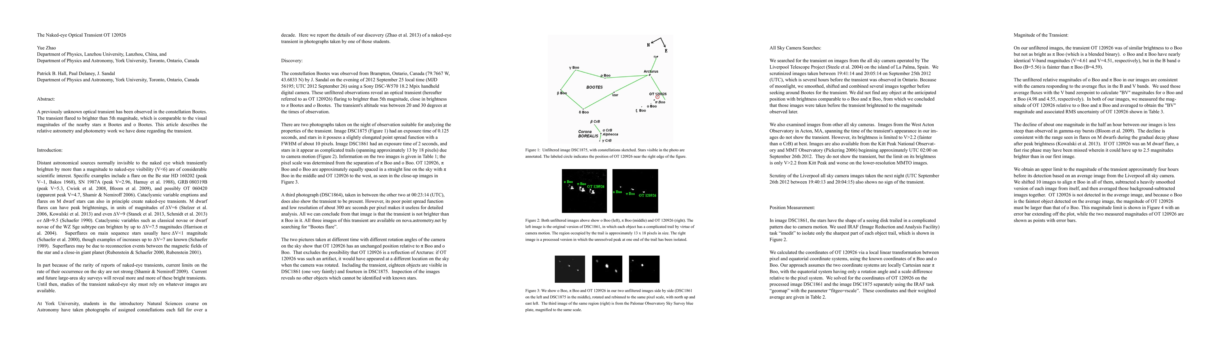 A previously unknown optical transient (OT 120926) has been observed in the constellation Bootes. The transient flared to magnitude 4.7, which is comparable to the visual magnitudes of the nearby stars $\pi$ Boo and $\omicron$ Boo. Database searches do not yield an unambiguous identification of a quiescent counterpart of this transient but do identify several candidates. However, none of the candidate stellar counterparts have shown any credible evidence of previous variability in the All-Sky Automated Survey or the Catalina Real-time Transient Survey. A flare on the nearby high proper motion, probable M dwarf star LP 440-48 could have produced OT 120926, but the amplitude of the flare would be an unprecedented 11.3 magnitudes. The current record amplitude for such flares on M dwarfs is 9.5 magnitudes.