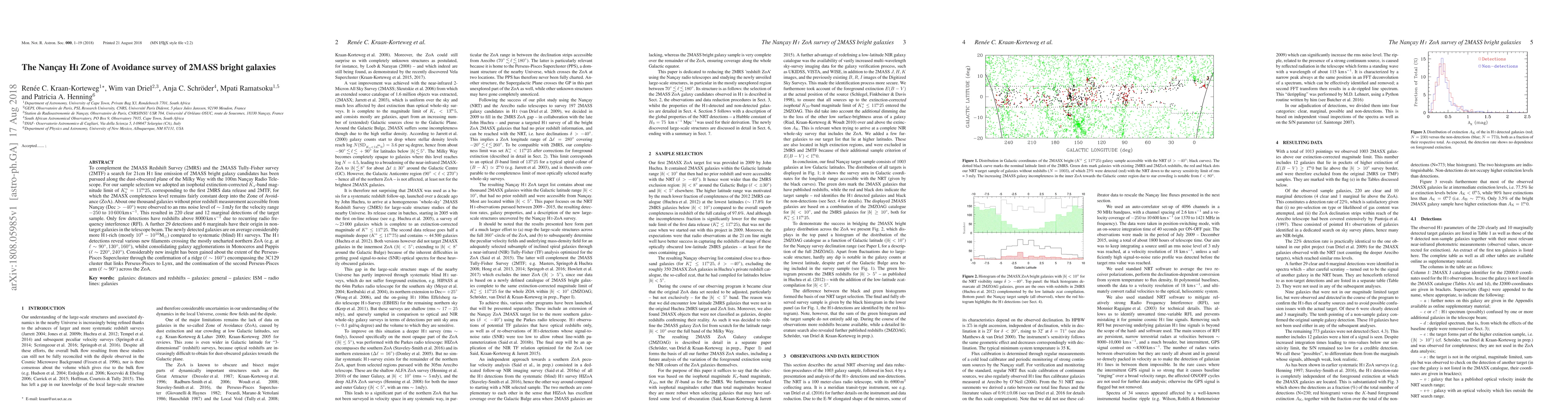A survey of 1,000 galaxies in the Milky Way's Zone of Avoidance has detected 220 new HI line emission signals from 2MASS bright galaxy candidates, revealing previously unknown filaments and consolidating known agglomerations.
