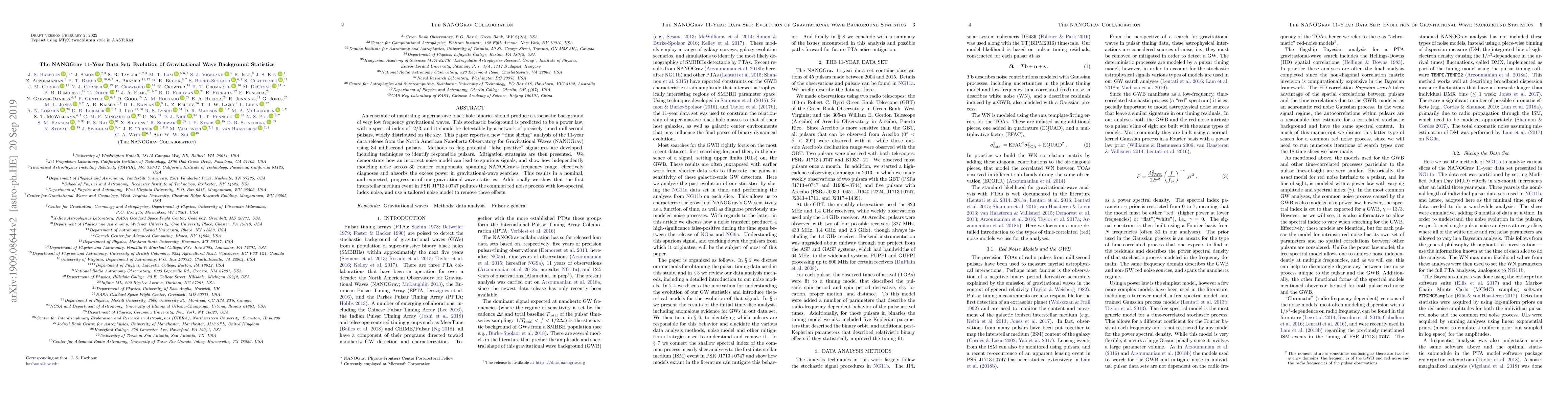 The NANOGrav 11-Year Data Set reveals a statistically consistent gravitational wave signal, confirming predictions of stochastic background power law with spectral index -2/3, while also identifying potential false positives and noise sources.