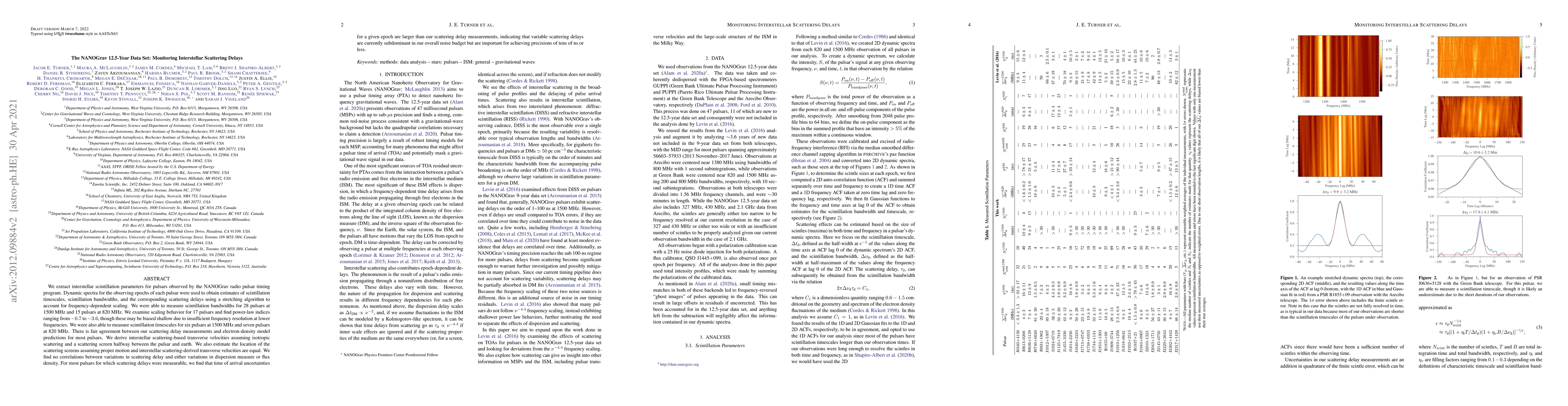 This paper analyzes interstellar scintillation parameters for pulsars observed by the NANOGrav program, measuring scintillation timescales and scattering delays. The study finds that while variable scattering delays are subdominant in overall noise, they are crucial for achieving high-precision timing.