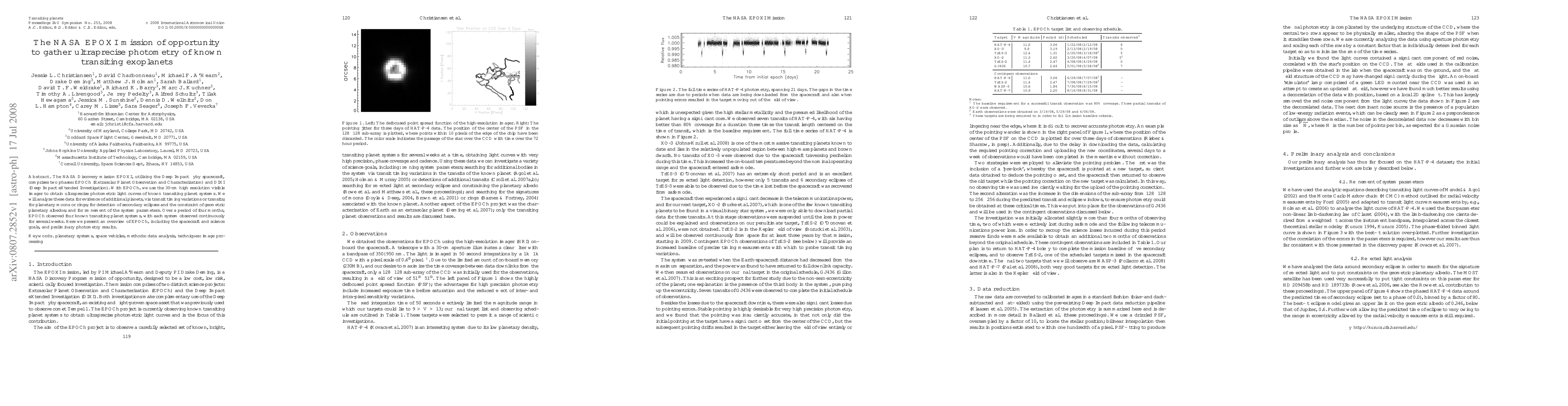 The NASA EPOXI mission, using the Deep Impact spacecraft, aims to gather ultraprecise photometry of known transiting exoplanets through its EPOCh phase. Preliminary results from observing four transiting planet systems over four months provide insights into potential additional planets, moons, rings, and refined system parameters.