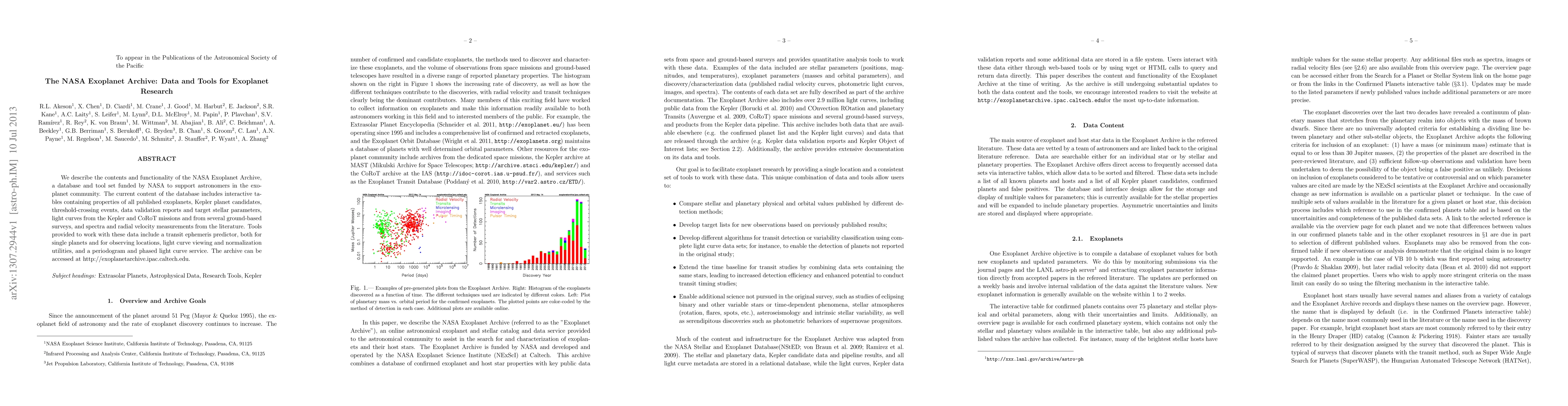 The NASA Exoplanet Archive is a comprehensive database and toolset supporting exoplanet research, featuring data on published exoplanets, Kepler candidates, and light curves, along with tools for data analysis and visualization. Accessible online, it aids astronomers in their studies.