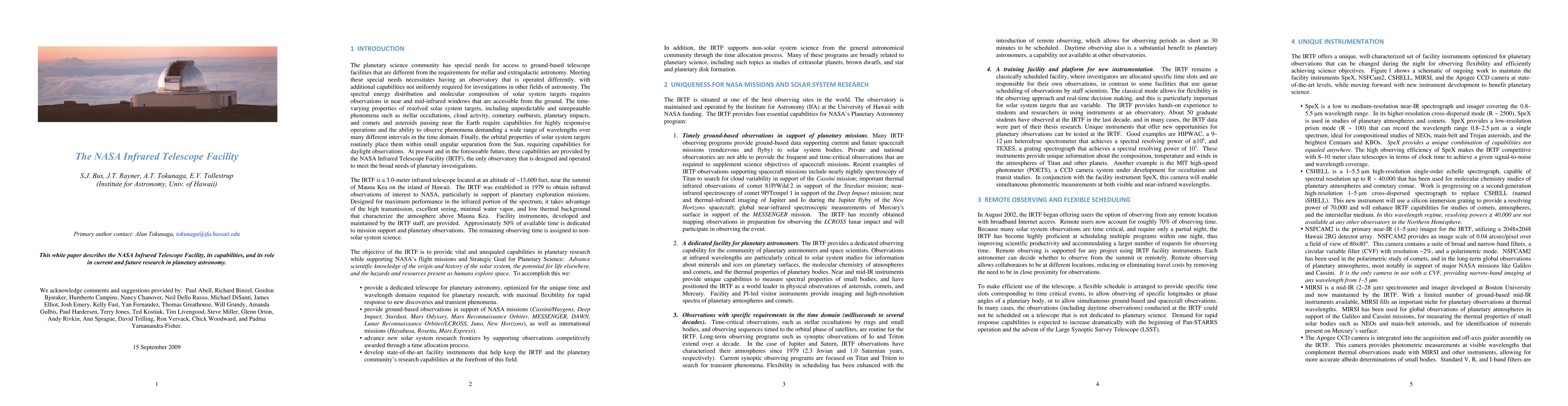 This white paper describes the NASA Infrared Telescope Facility, its capabilities, and its role in current and future research in planetary astronomy.