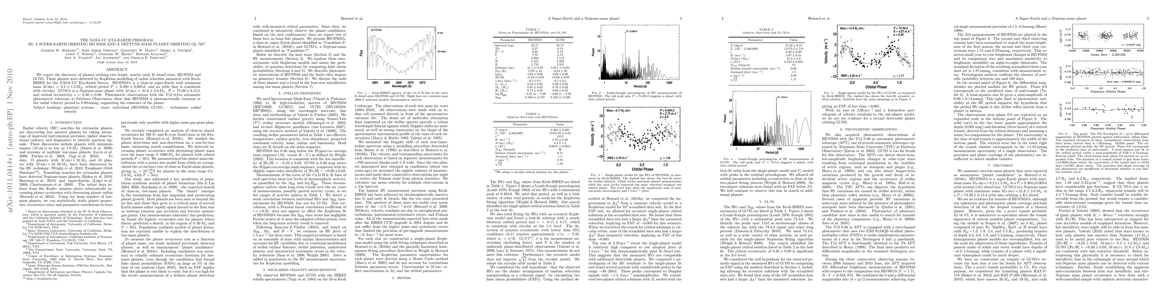 The NASA-UC Eta-Earth Program discovered a super-Earth orbiting HD 97658 and a Neptune-mass planet orbiting Gl 785, both detected via radial velocity measurements. HD 97658 b has a minimum mass of 8.2 M_Earth and a short orbital period, while Gl 785 b has a mass of 21.6 M_Earth and a longer, eccentric orbit.