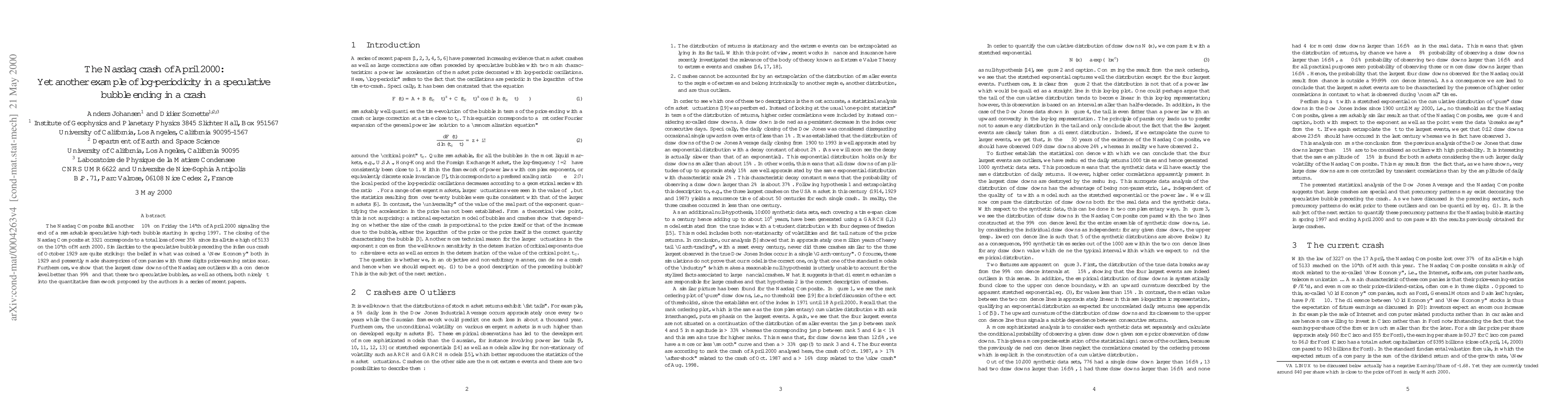 The Nasdaq Composite fell another $\approx 10 %$ on Friday the 14'th of April 2000 signaling the end of a remarkable speculative high-tech bubble starting in spring 1997. The closing of the Nasdaq Composite at 3321 corresponds to a total loss of over 35% since its all-time high of 5133 on the 10'th of March 2000. Similarities to the speculative bubble preceding the infamous crash of October 1929 are quite striking: the belief in what was coined a ``New Economy'' both in 1929 and presently made share-prices of companies with three digits price-earning ratios soar. Furthermore, we show that the largest draw downs of the Nasdaq are outliers with a confidence level better than 99% and that these two speculative bubbles, as well as others, both nicely fit into the quantitative framework proposed by the authors in a series of recent papers.