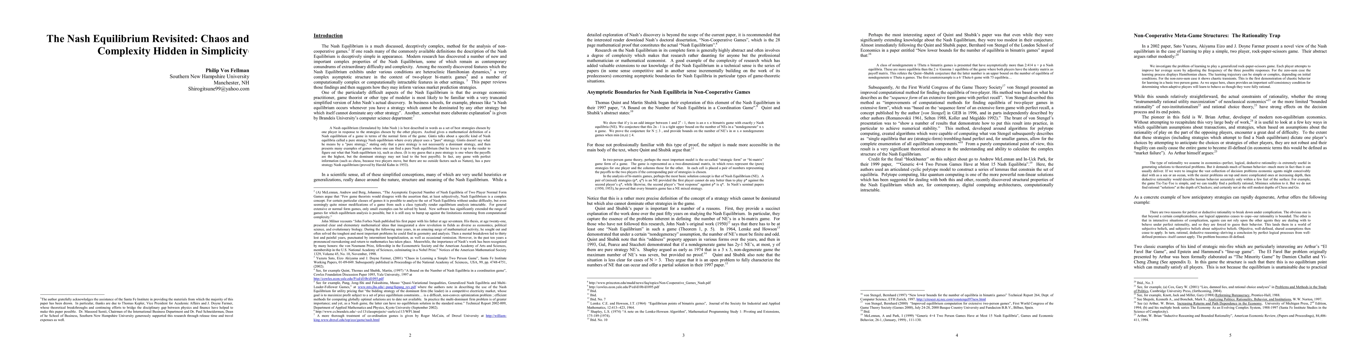 This paper reveals that the Nash Equilibrium has complex properties, including chaotic dynamics in two-player games, making it challenging to predict market behavior. It proposes new insights for market prediction strategies based on these findings.