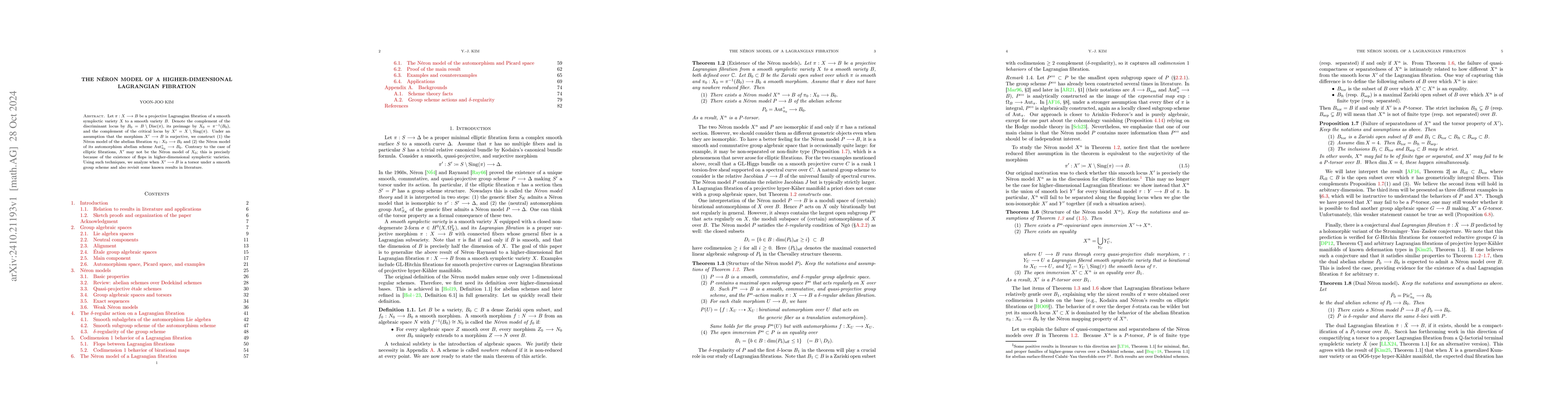 This paper constructs the Néron models for a projective Lagrangian fibration and its automorphism abelian scheme, addressing the distinction from elliptic fibrations due to flops in higher-dimensional symplectic varieties. It analyzes conditions under which the preimage is a torsor under a smooth group scheme and revisits related known results.
