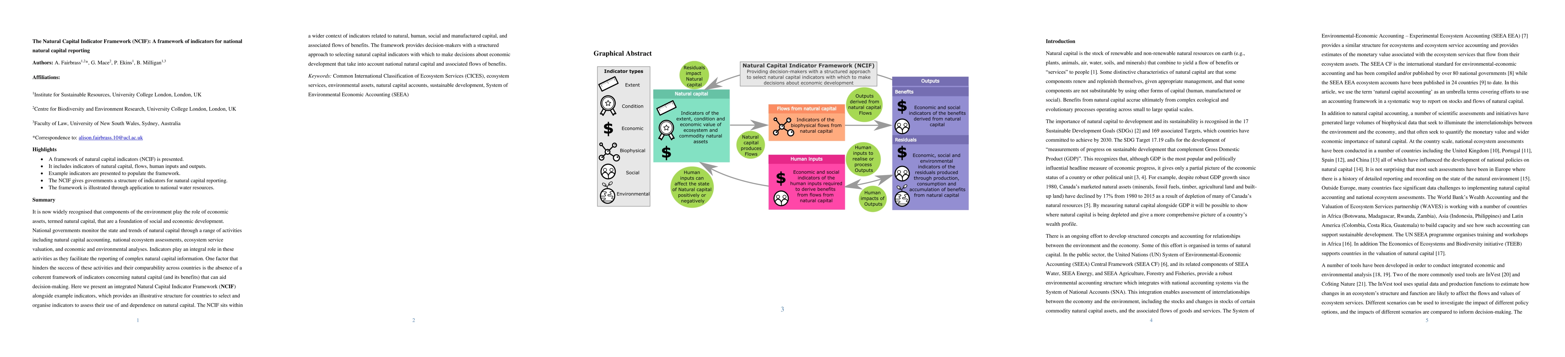 The paper introduces the Natural Capital Indicator Framework (NCIF), a structured approach for national natural capital reporting, aiming to enhance comparability and decision-making by providing a coherent set of indicators for assessing natural capital use and benefits. The NCIF integrates within a broader context of various capital types and their associated benefits.