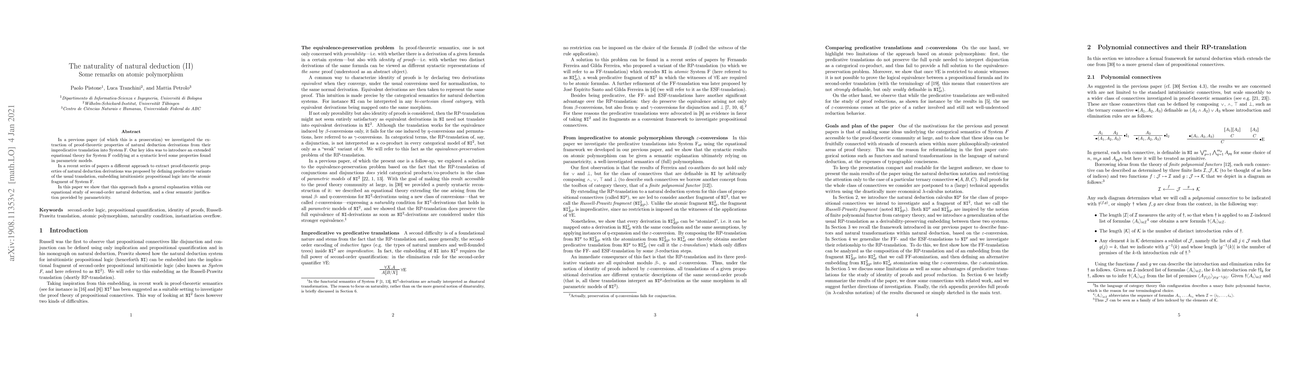 In a previous paper (of which this is a prosecution) we investigated the extraction of proof-theoretic properties of natural deduction derivations from their impredicative translation into System F. Our key idea was to introduce an extended equational theory for System F codifying at a syntactic level some properties found in parametric models. In a recent series of papers a different approach to extract proof-theoretic properties of natural deduction derivations was proposed by defining predicative variants of the usual translation, embedding intuitionistic propositional logic into the atomic fragment of System F. In this paper we show that this approach finds a general explanation within our equational study of second-order natural deduction, and a clear semantic justification provided by parametricity.
