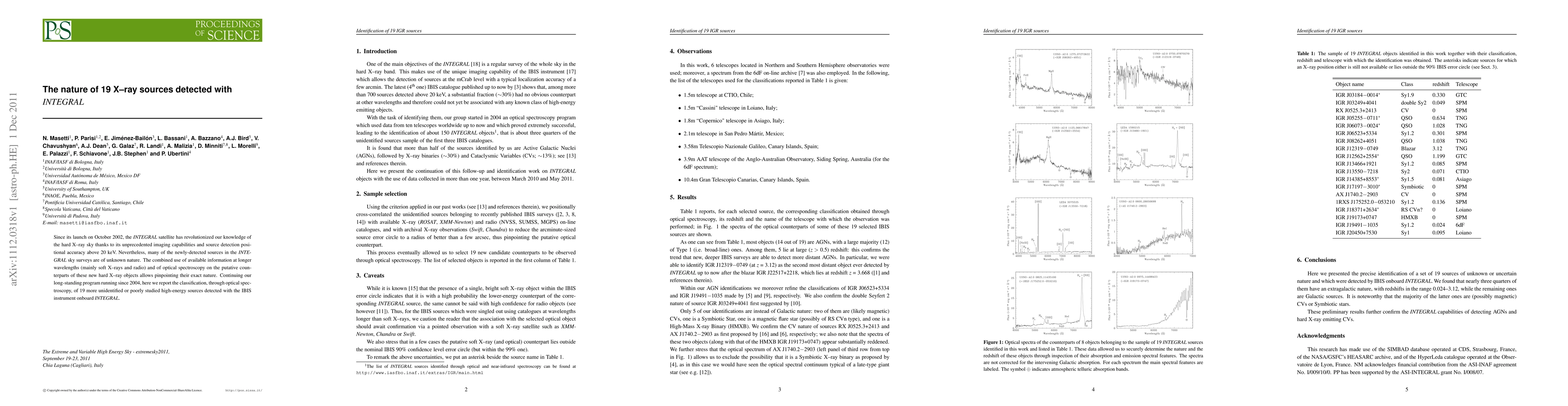 This paper reports the classification of 19 unidentified high-energy X-ray sources detected by the INTEGRAL satellite using optical spectroscopy and multi-wavelength data. The study aims to identify the nature of these sources, contributing to the understanding of the hard X-ray sky.