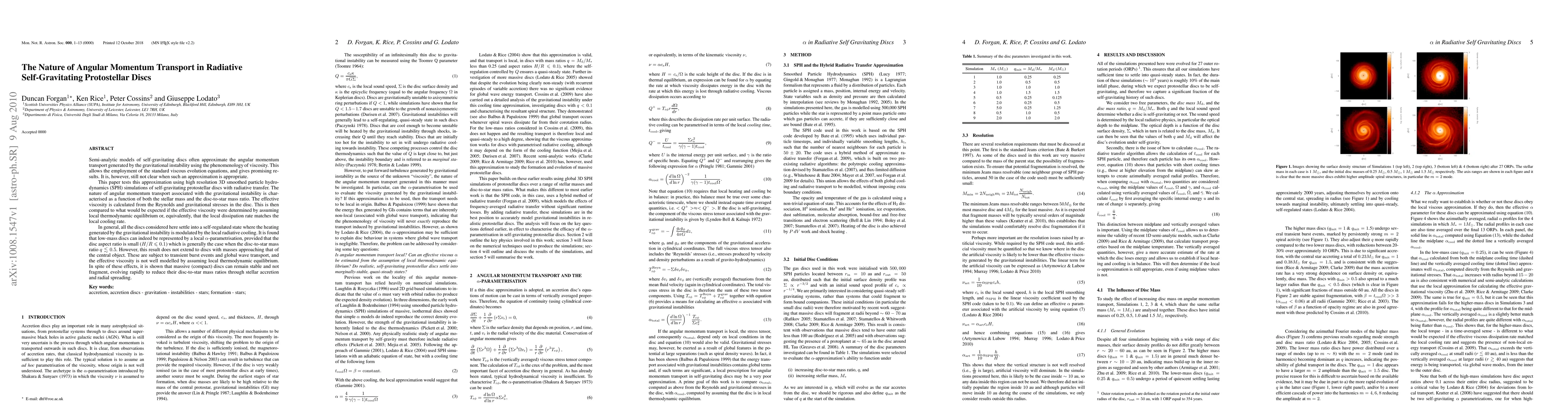 Semi-analytic models of self-gravitating discs often approximate the angular momentum transport generated by the gravitational instability using the phenomenology of viscosity. This allows the employment of the standard viscous evolution equations, and gives promising results. It is, however, still not clear when such an approximation is appropriate. This paper tests this approximation using high resolution 3D smoothed particle hydrodynamics (SPH) simulations of self-gravitating protostellar discs with radiative transfer. The nature of angular momentum transport associated with the gravitational instability is characterised as a function of both the stellar mass and the disc-to-star mass ratio. The effective viscosity is calculated from the Reynolds and gravitational stresses in the disc. This is then compared to what would be expected if the effective viscosity were determined by assuming local thermodynamic equilibrium or, equivalently, that the local dissipation rate matches the local cooling rate. In general, all the discs considered here settle into a self-regulated state where the heating generated by the gravitational instability is modulated by the local radiative cooling. It is found that low-mass discs can indeed be represented by a local "alpha-parametrisation", provided that the disc aspect ratio is small (H/R < 0.1) which is generally the case when the disc-to-star mass ratio q <0.5. However, this result does not extend to discs with masses approaching that of the central object. These are subject to transient burst events and global wave transport, and the effective viscosity is not well modelled by assuming local thermodynamic equilibrium. In spite of these effects, it is shown that massive (compact) discs can remain stable and not fragment, evolving rapidly to reduce their disc-to-star mass ratios through stellar accretion and radial spreading.