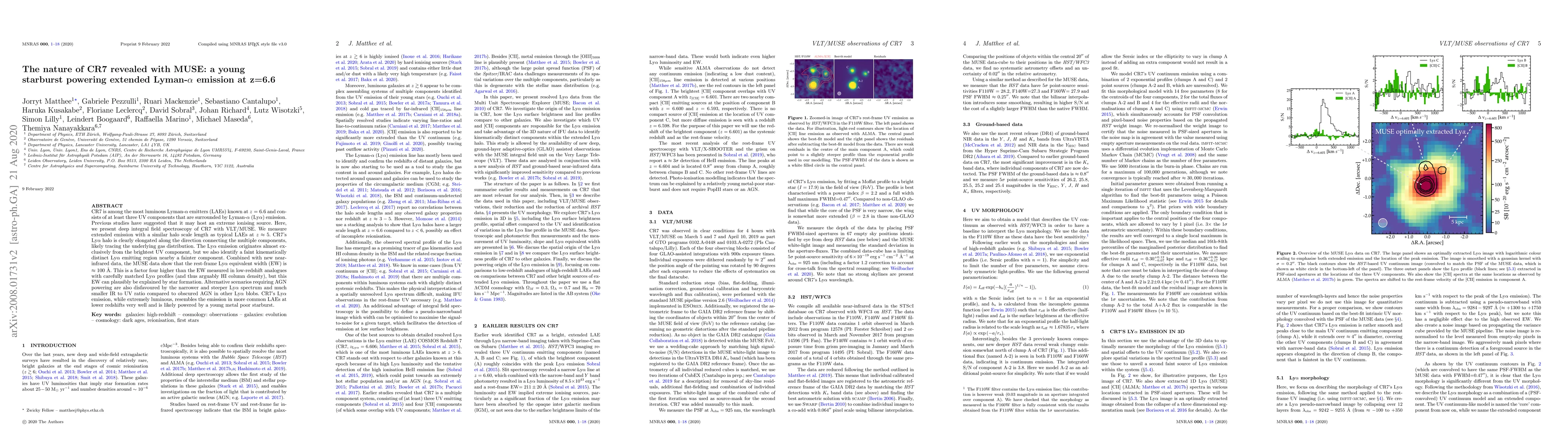 A new study using MUSE spectroscopy reveals that CR7, a highly luminous Lyman-alpha emitter at z=6.6, is powered by a young starburst rather than an active galaxy, with emission characteristics similar to those of more common Lyman-alpha emitters at lower redshifts.