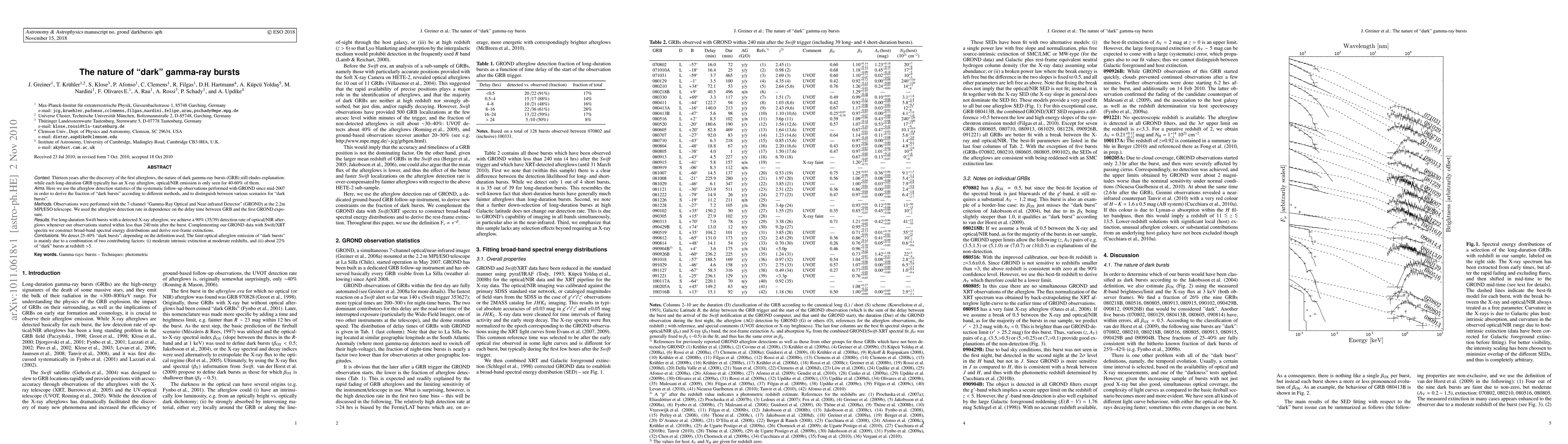 This paper investigates the elusive nature of dark gamma-ray bursts (GRBs), which lack optical/NIR afterglows, using systematic follow-up observations with the GROND detector. The study finds that 25-40% of long-duration GRBs are "dark" due to moderate intrinsic extinction and a significant fraction occurring at high redshifts.