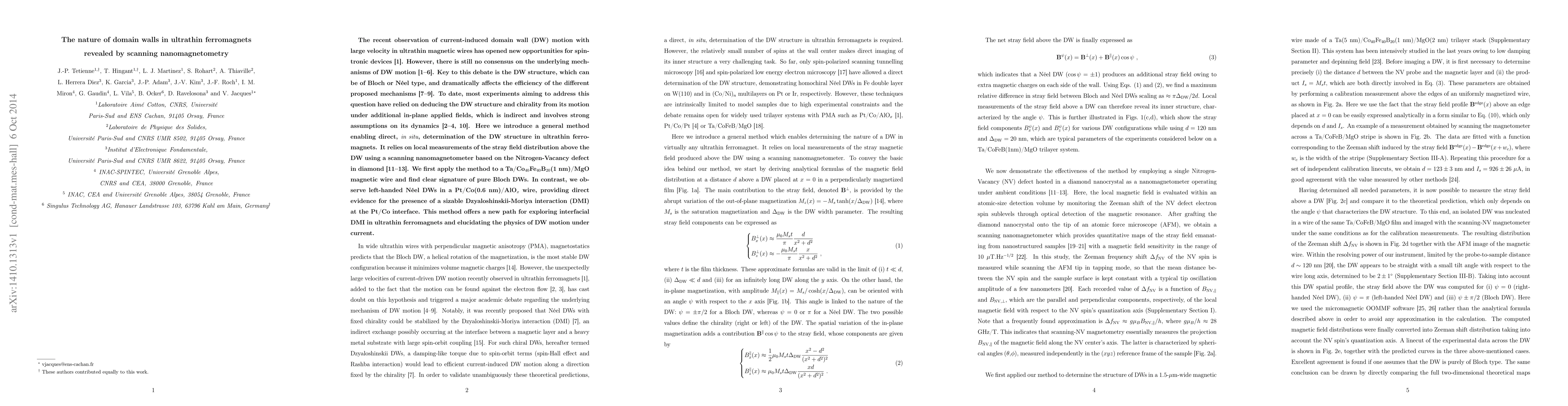 The recent observation of current-induced domain wall (DW) motion with large velocity in ultrathin magnetic wires has opened new opportunities for spintronic devices. However, there is still no consensus on the underlying mechanisms of DW motion. Key to this debate is the DW structure, which can be of Bloch or N\'eel type, and dramatically affects the efficiency of the different proposed mechanisms. To date, most experiments aiming to address this question have relied on deducing the DW structure and chirality from its motion under additional in-plane applied fields, which is indirect and involves strong assumptions on its dynamics. Here we introduce a general method enabling direct, in situ, determination of the DW structure in ultrathin ferromagnets. It relies on local measurements of the stray field distribution above the DW using a scanning nanomagnetometer based on the Nitrogen-Vacancy defect in diamond. We first apply the method to a Ta/Co40Fe40B20(1 nm)/MgO magnetic wire and find clear signature of pure Bloch DWs. In contrast, we observe left-handed N\'eel DWs in a Pt/Co(0.6 nm)/AlOx wire, providing direct evidence for the presence of a sizable Dzyaloshinskii-Moriya interaction (DMI) at the Pt/Co interface. This method offers a new path for exploring interfacial DMI in ultrathin ferromagnets and elucidating the physics of DW motion under current.