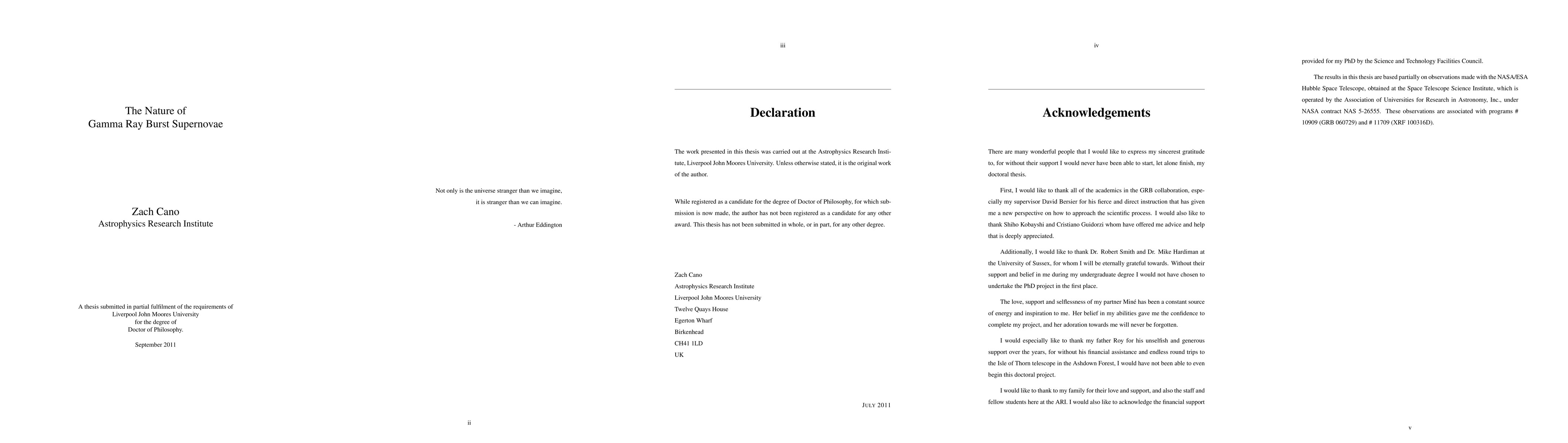 Gamma Ray Bursts (GRBs) and Supernovae (SNe) are among the brightest and most energetic physical processes in the universe. It is known that core-collapse SNe arise from the gravitational collapse and subsequent explosion of massive stars (the progen- itors of nearby core-collapse SNe have been imaged and unambiguously identified). It is also believed that the progenitors of long-duration GRBs (L-GRBs) are massive stars, mainly due to the occurrence and detection of very energetic core-collapse su- pernovae that happen both temporally and spatially coincident with most L-GRBs. However many outstanding questions regarding the nature of these events exist: How massive are the progenitors? What evolutionary stage are they at when they explode? Do they exist as single stars or in binary systems (or both, and to what fractions)? The work presented in this thesis attempts to further our understanding at the types of progenitors that give rise to long-duration GRB supernovae (GRB-SNe). This work is based on optical photometry obtained for three GRB-SNe events: GRB 060729, GRB 090618 and XRF 100316D (an X-Ray Flash is similar to a L-GRB, but has a lower peak energy). For GRB 060729 and GRB 090618 we model the optical light curves and account for light coming from three sources: the host galaxy, the afterglow and the supernova. When we remove the host flux, and model the afterglow, the re- maining flux resembles that of a SN, both in the shape of the light curve and the shape of the spectral energy distribution. Our investigation of XRF 100316D and its spectroscopically-confirmed Ic-BL SN 2010bh is more detailed as we were able to obtain optical and infrared data in many filters, which we utilize to created a quasi-bolometric light curve that we model to determine physical parameters of the SN...