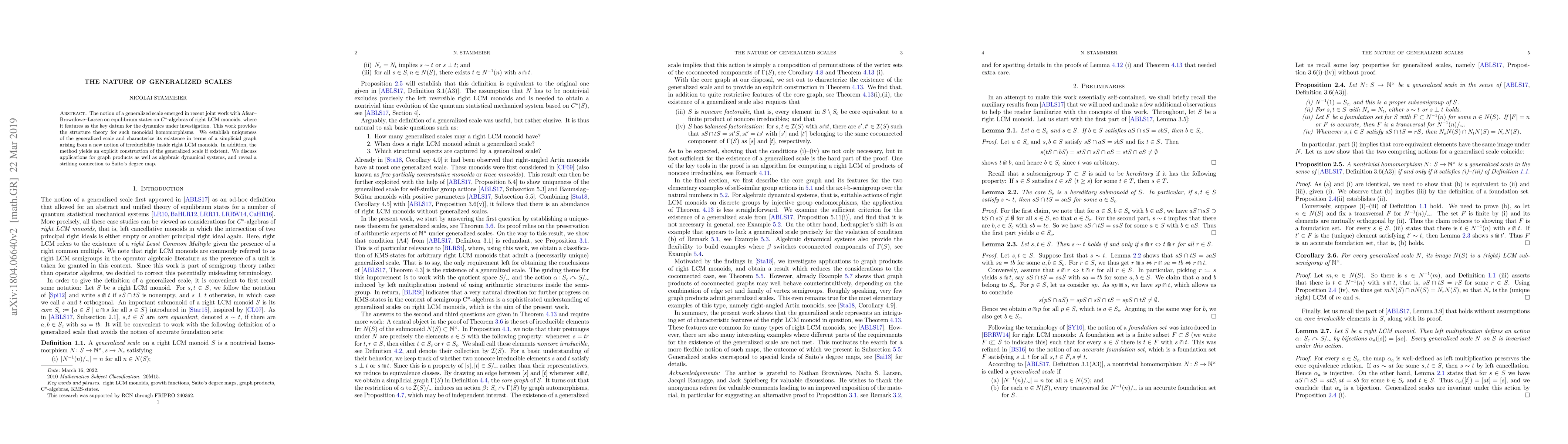 The notion of a generalized scale emerged in recent joint work with Afsar-Brownlowe-Larsen on equilibrium states on C*-algebras of right LCM monoids, where it features as the key datum for the dynamics under investigation. This work provides the structure theory for such monoidal homomorphisms. We establish uniqueness of the generalized scale and characterize its existence in terms of a simplicial graph arising from a new notion of irreducibility inside right LCM monoids. In addition, the method yields an explicit construction of the generalized scale if existent. We discuss applications for graph products as well as algebraic dynamical systems, and reveal a striking connection to Saito's degree map.