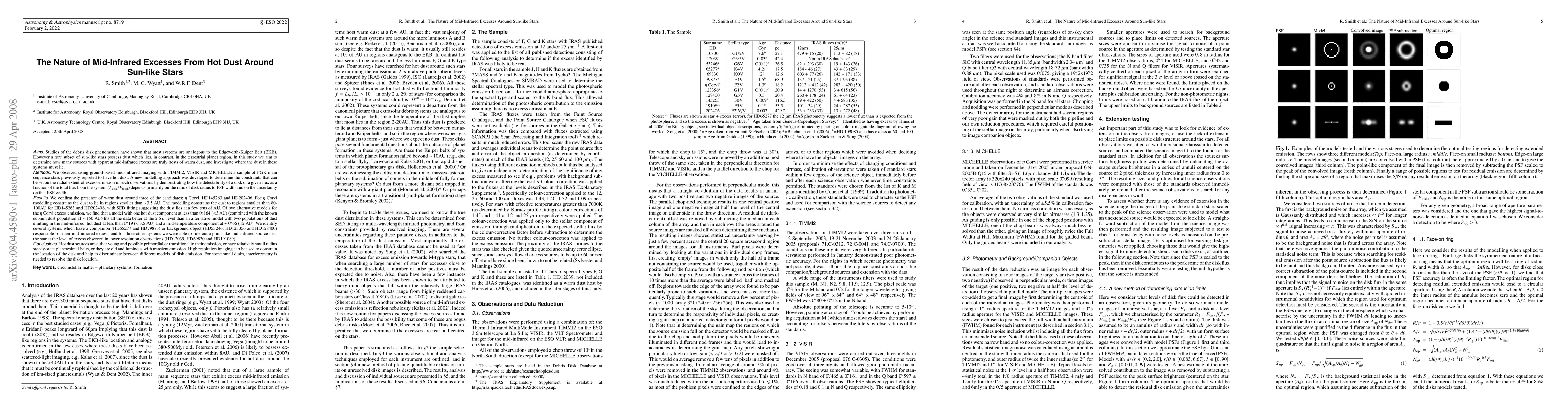 This study investigates mid-infrared excesses from hot dust around Sun-like stars, confirming warm dust presence in three stars and identifying the dust's radial extent. High-resolution imaging helps to distinguish between different disk emission models, while interferometry is required for resolving small disks.