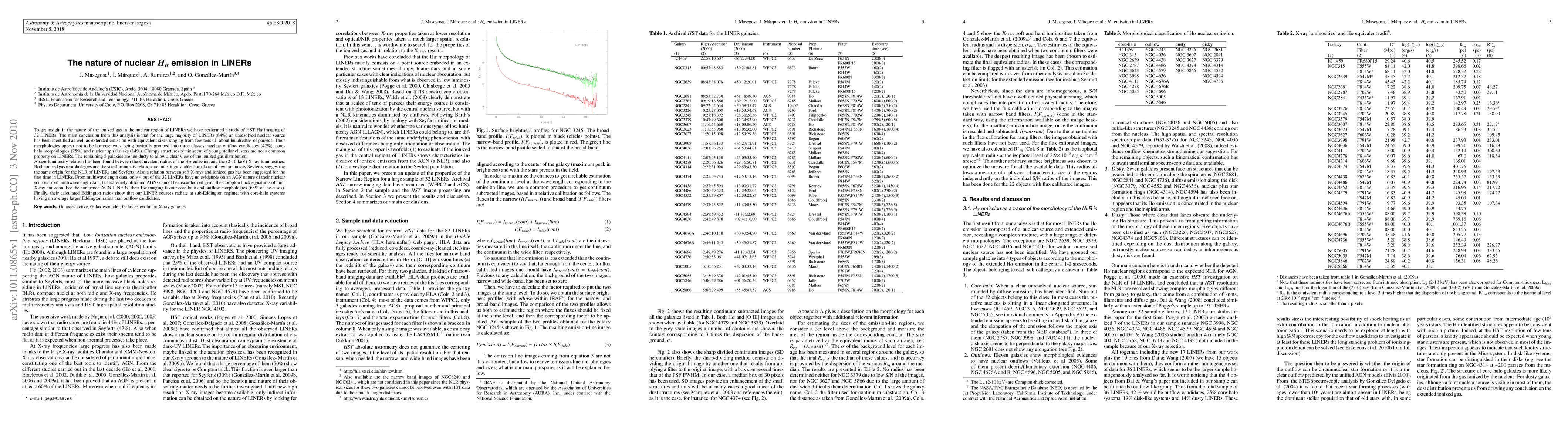 To get insight in the nature of the ionized gas in the nuclear region of LINERs we have performed a study of HST Halpha imaging of 32 LINERs. The main conclusion from this analysis is that for the large majority of LINERs (84%) an unresolved nuclear source has been identified as well as extended emission with equivalent sizes ranging from few tens till about hundredths of parsecs. Their morphologies appear not to be homogeneous being basically grouped into three classes:nuclear outflow candidates (42%), core-halo morphologies (25%) and nuclear spiral disks (14%). Clumpy structures reminiscent of young stellar clusters are not a common property on LINERs. The remaining 5 galaxies are too dusty to allow a clear view of the ionized gas distribution. A size-luminosity relation has been found between the equivalent radius of the Halpha emission and the (2-10 keV) X-ray luminosities. Both ionised gas morphologies and the size-luminosity relation are indistinguishable from those of low luminosity Seyferts, suggesting the same origin for the NLR of LINERs and Seyferts. Also a relation between soft X-rays and ionized gas has been suggested for the first time in LINERs. From multiwavelength data, only 4 out of the 32 LINERs have no evidences on an AGN nature of theirnuclear sources from multiwavelength data, but extremely obscured AGNs cannot be discarded out given the Compton thick signatures of their X-ray emission. For the confirmed AGN LINERs, their Halpha imaging favour core-halo and outflow morphologies (65% of the cases). Finally, their calculated Eddington ratios show that our LINER sources radiate at sub-Eddington regime, with core-halo systems having on average larger Eddington ratios than outflow candidates.